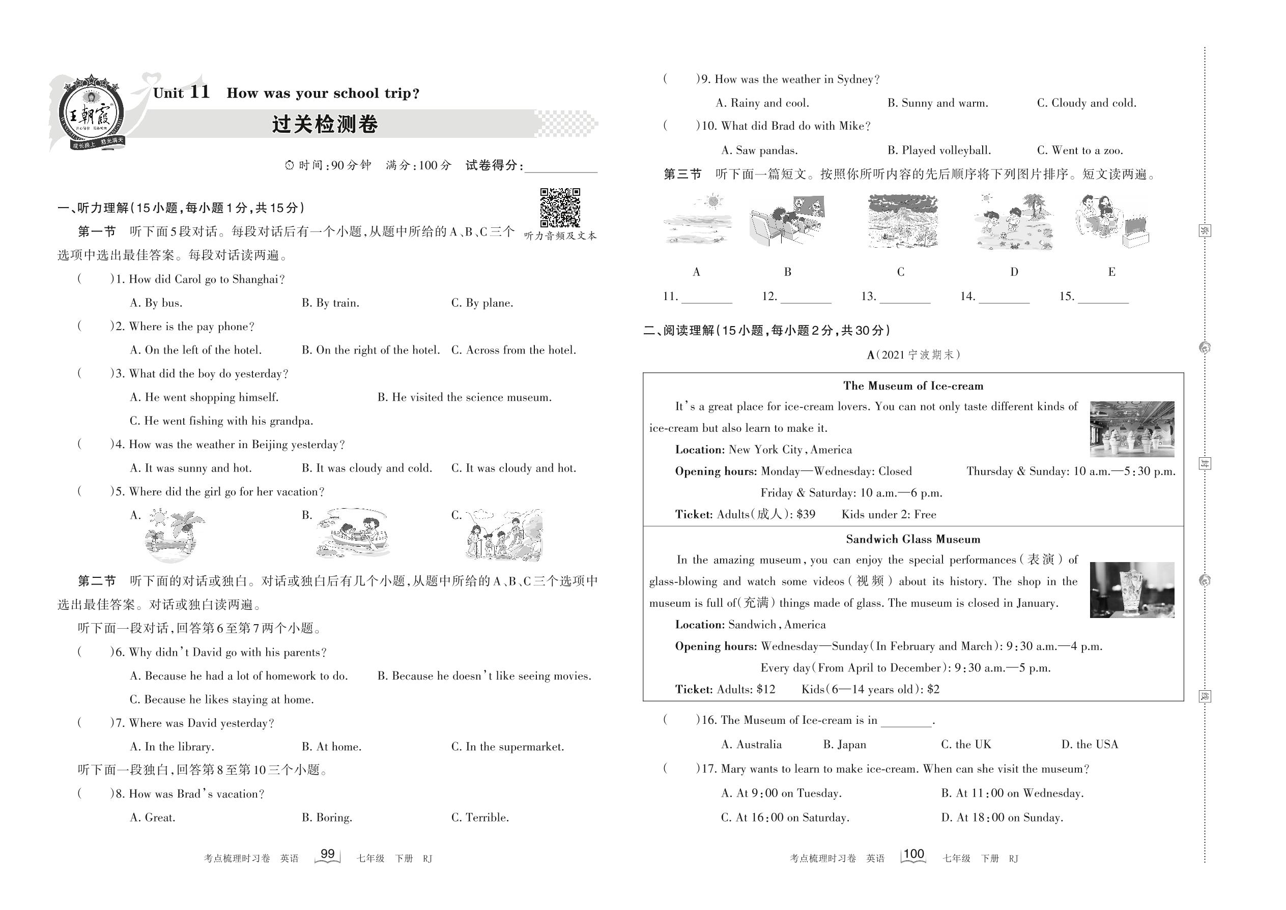 2022下册七年级英语人教版 Unit 11 过关检测卷