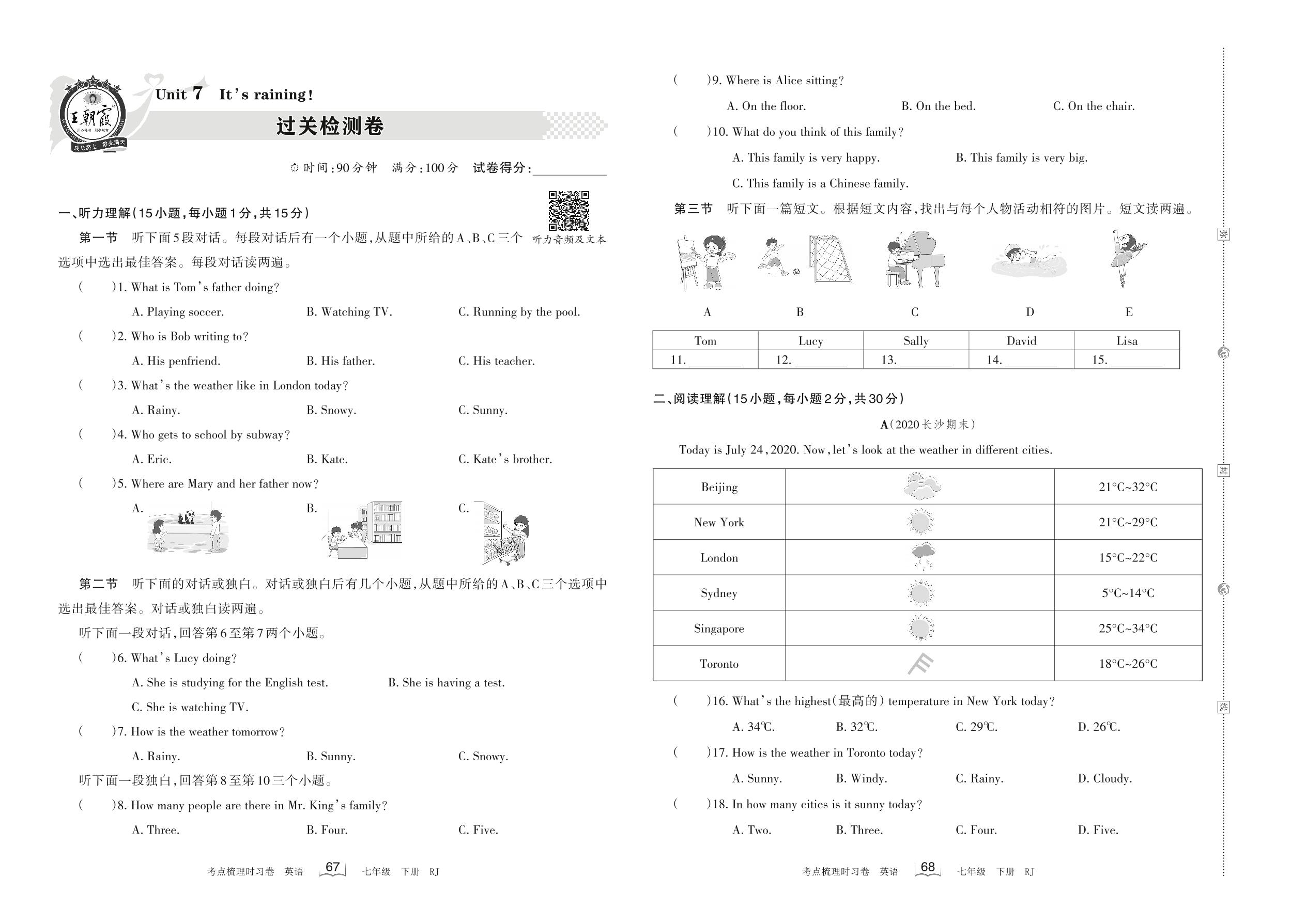 2022下册七年级英语人教版 Unit 7 过关检测卷