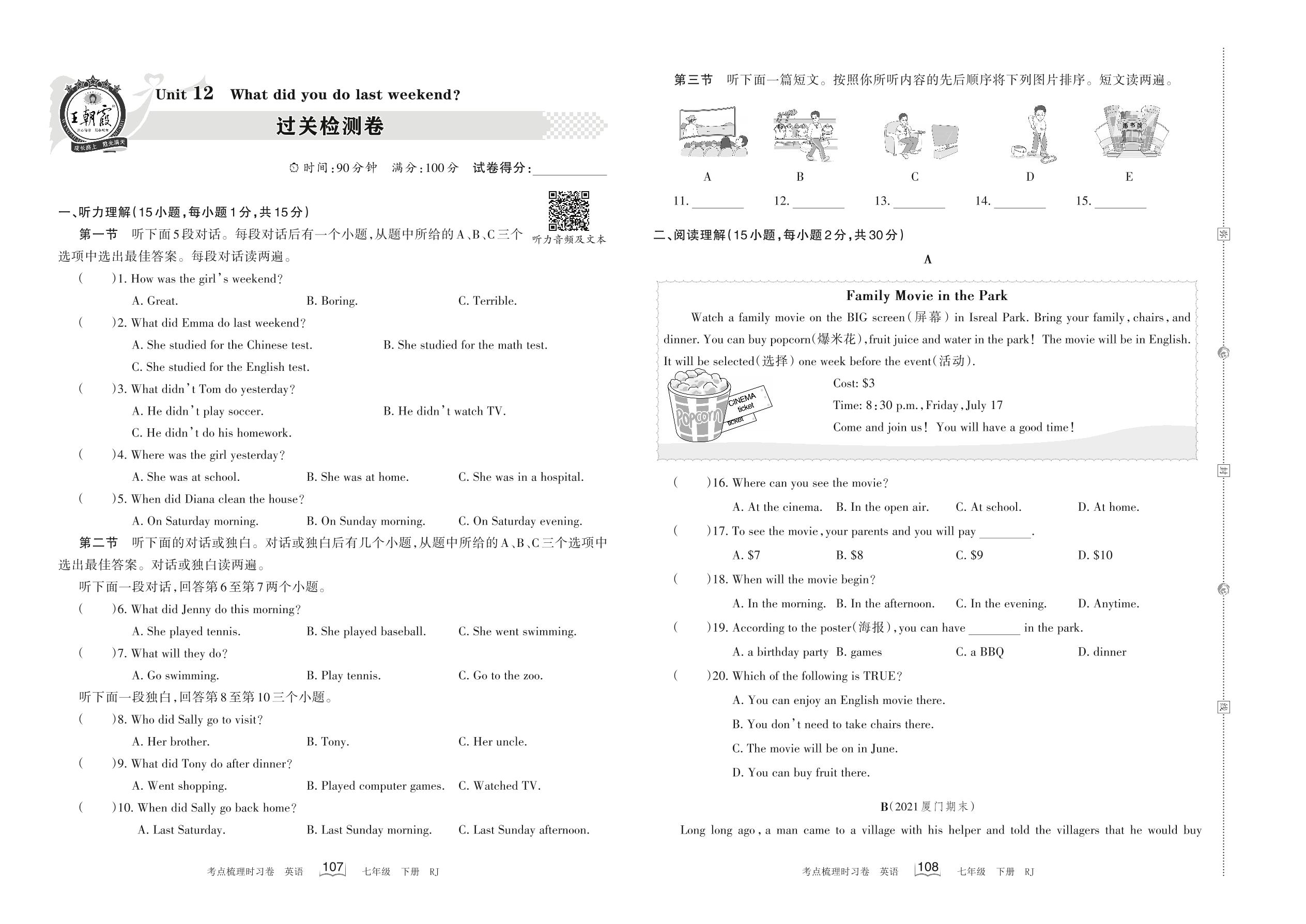 2022下册七年级英语人教版 Unit 12 过关检测卷