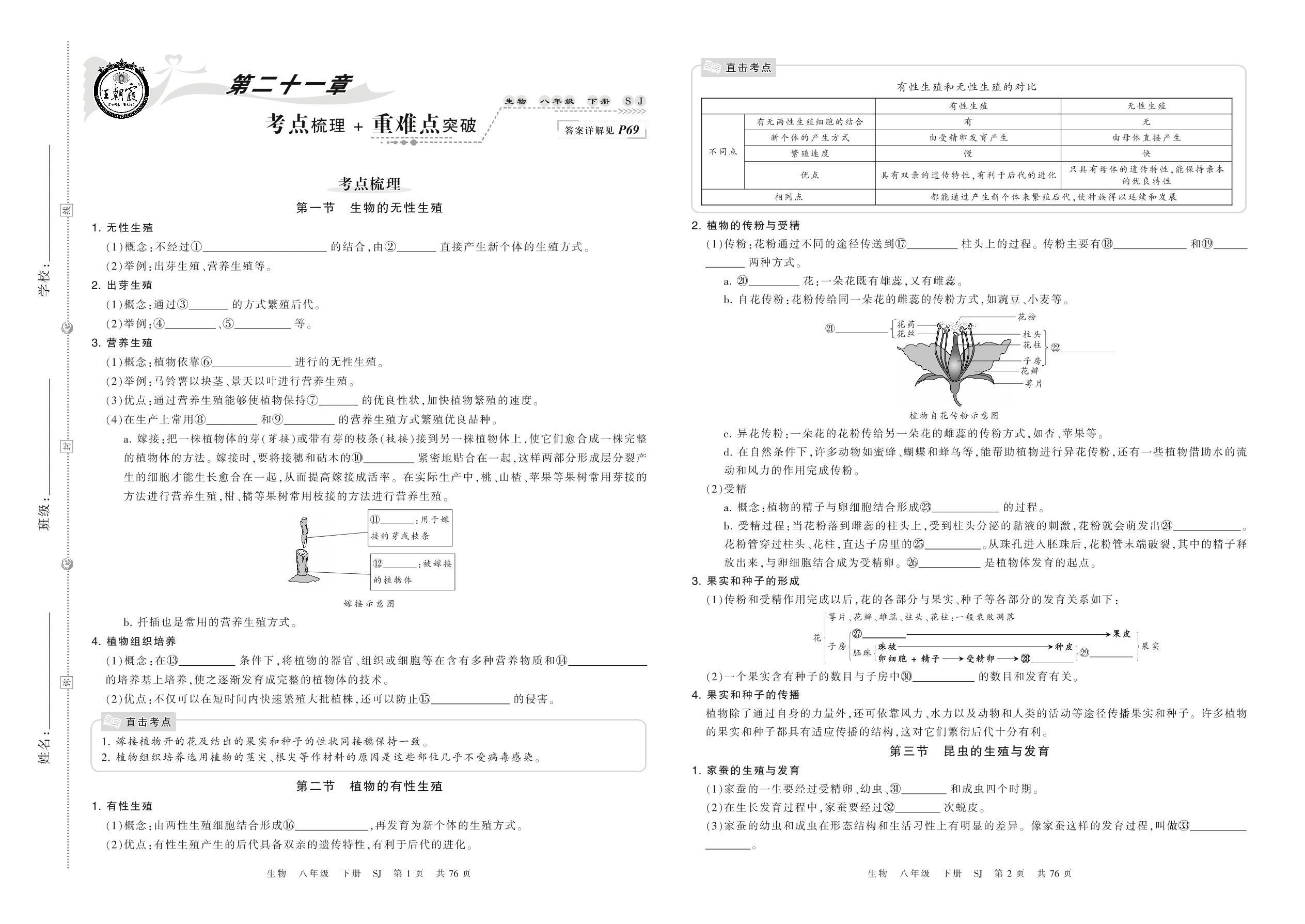 2022下册八年级生物苏教版 第二十一章 考点梳理 + 重难点突破