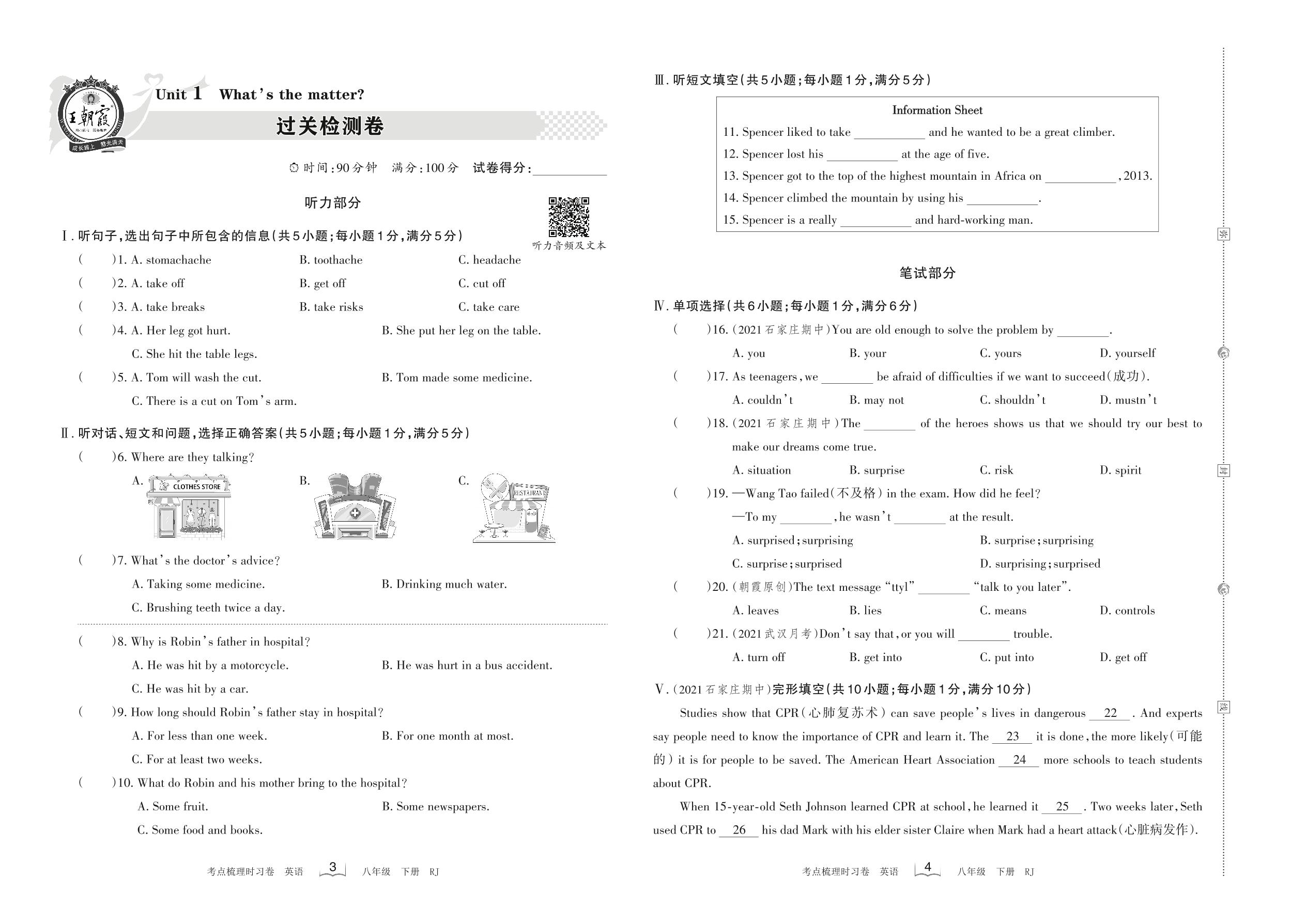 2022下册八年级英语人教版 Unit 1 过关检测卷_R220216150122564