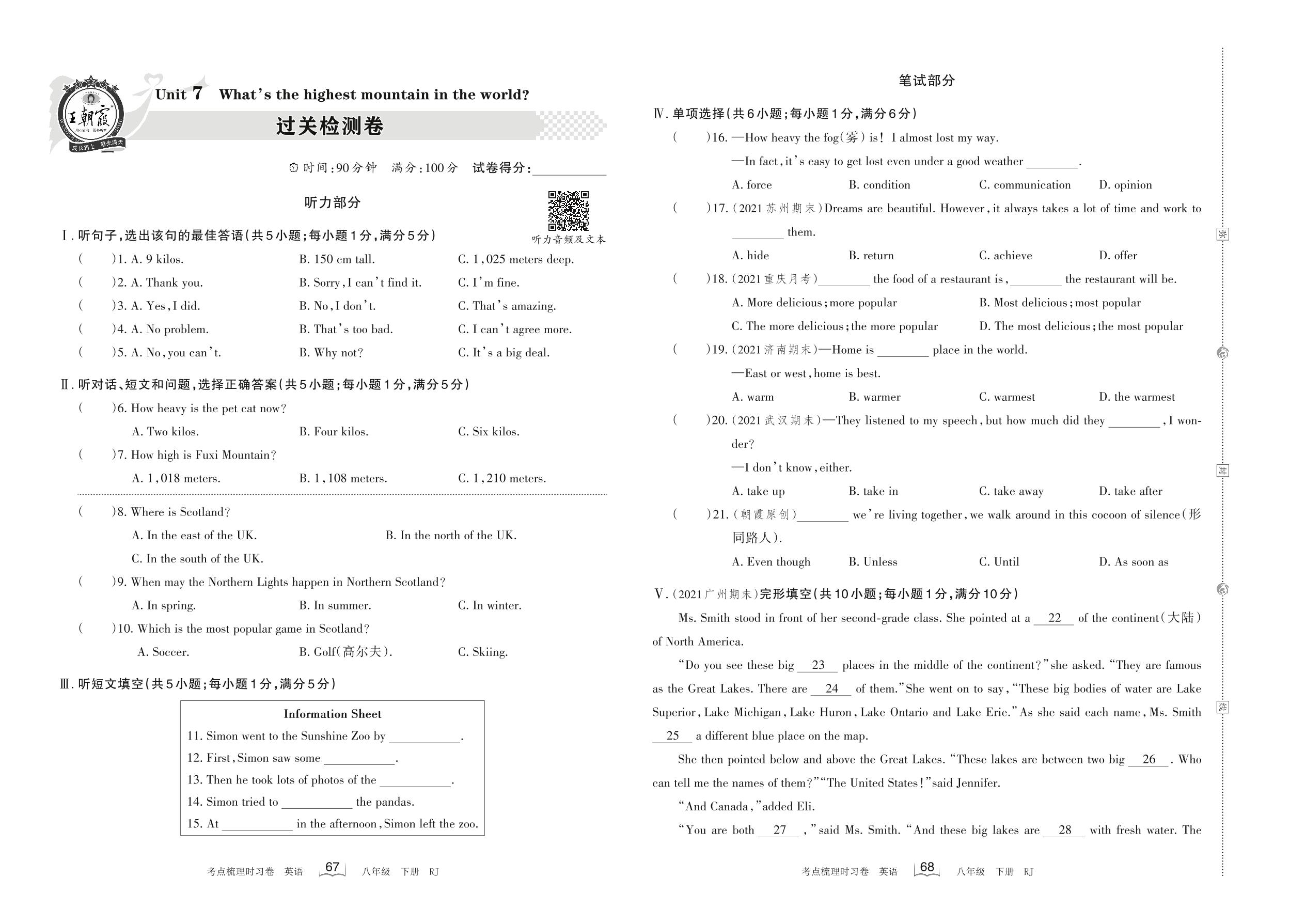 2022下册八年级英语人教版 Unit 7 过关检测卷_R220216150123382