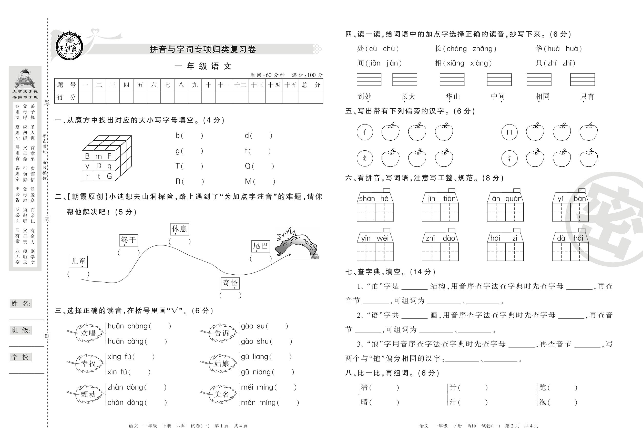 王朝霞期末专项卷一年级下册语文(西师版)_R210731182930【1】