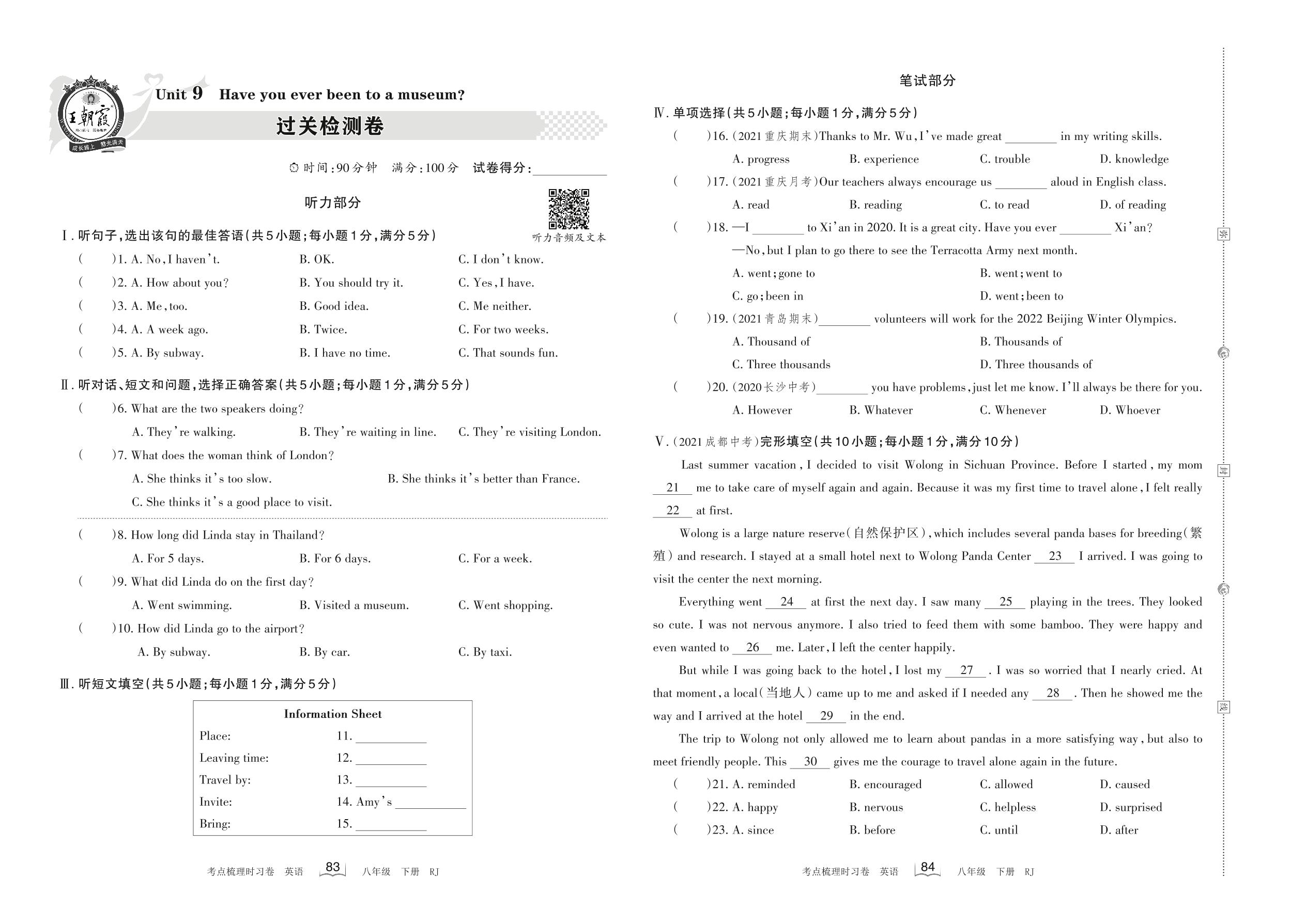 2022下册八年级英语人教版 Unit 9 过关检测卷_R220216150123249