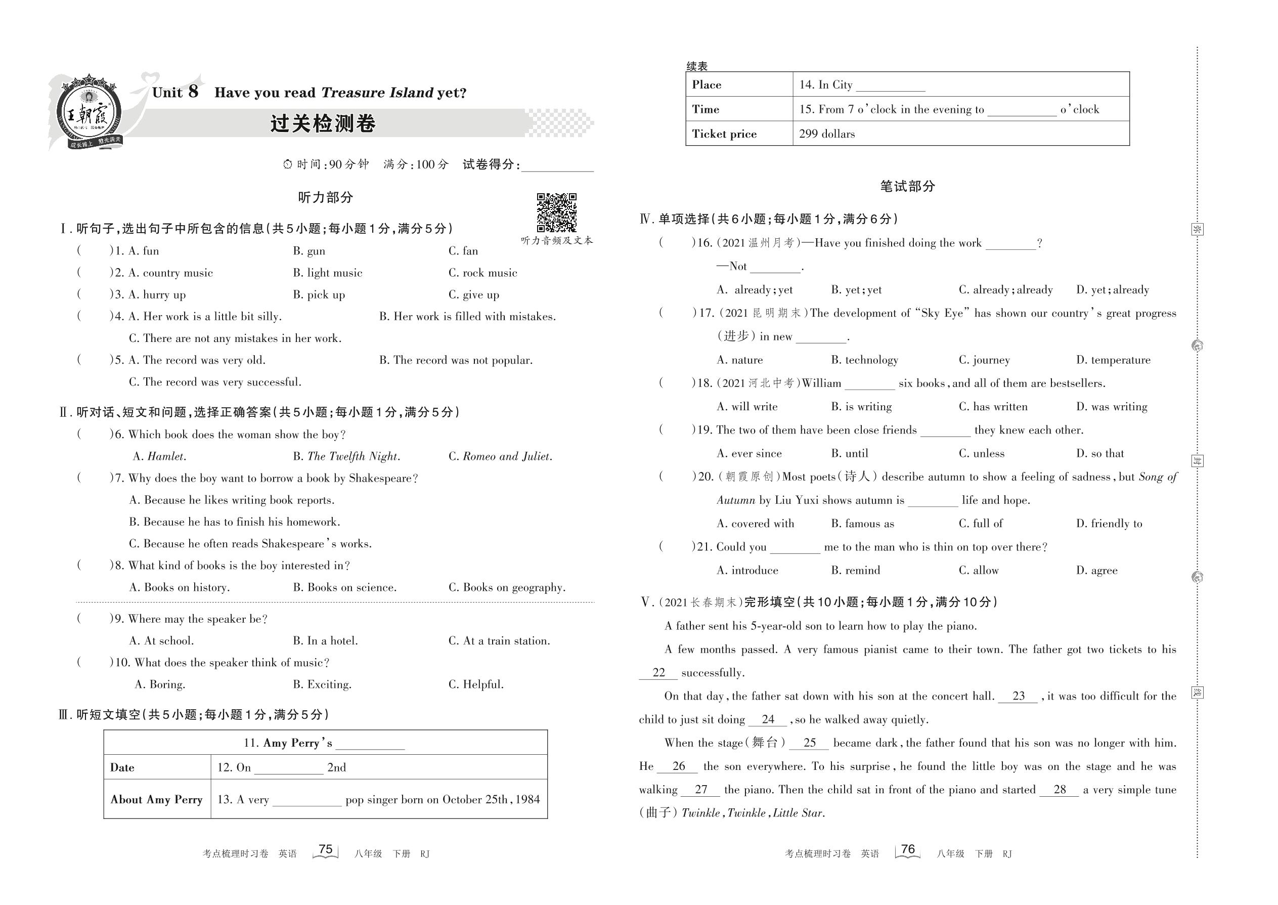 2022下册八年级英语人教版 Unit 8 过关检测卷_R220216150123498