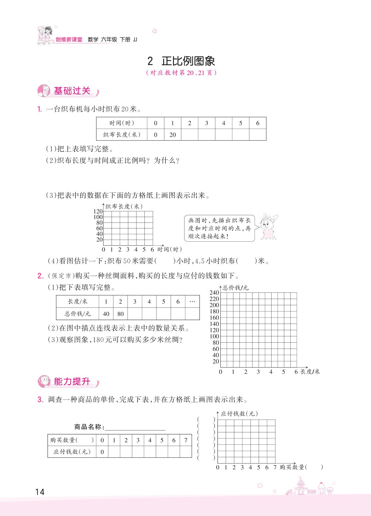 2022下册六年级数学冀教版 三 正比例 反比例——2 正比例图象