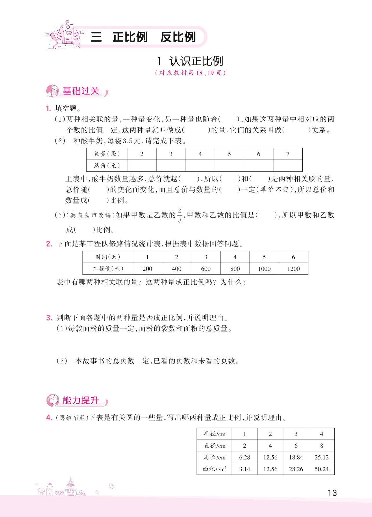 2022下册六年级数学冀教版 三 正比例 反比例——1 认识正比例