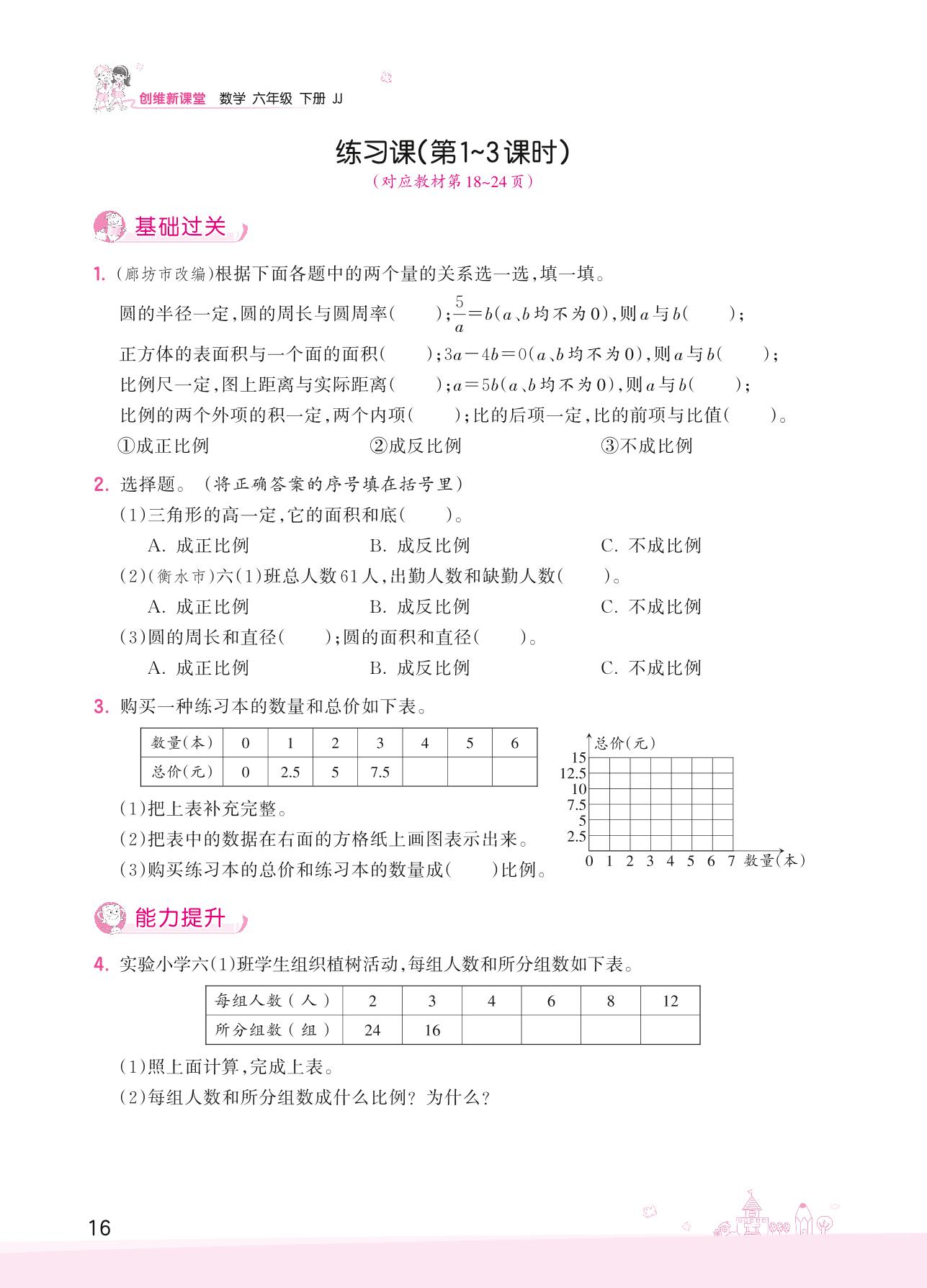 2022下册六年级数学冀教版 三 正比例 反比例——练习课(第1~3课时)