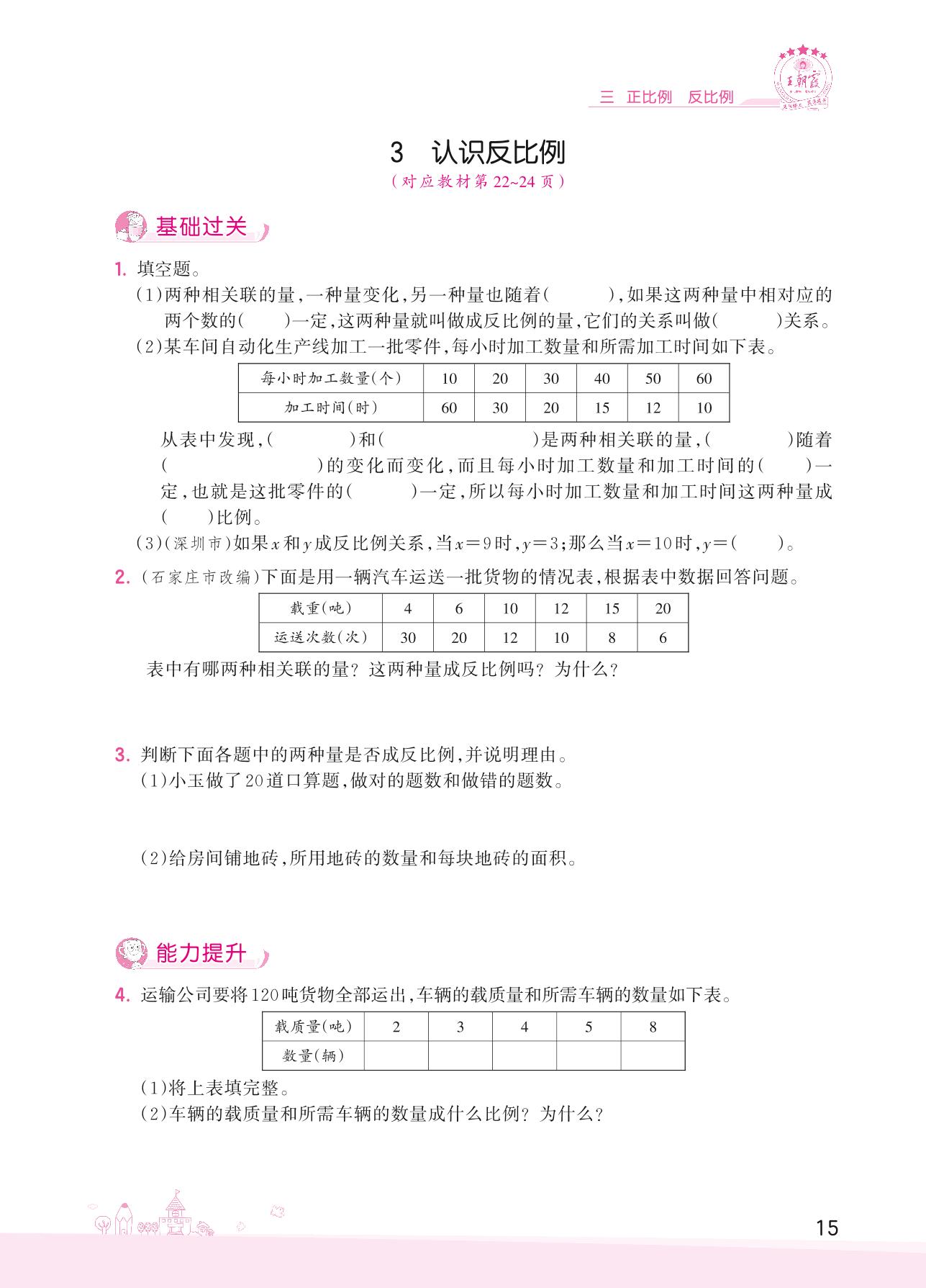 2022下册六年级数学冀教版 三 正比例 反比例——3 认识反比例
