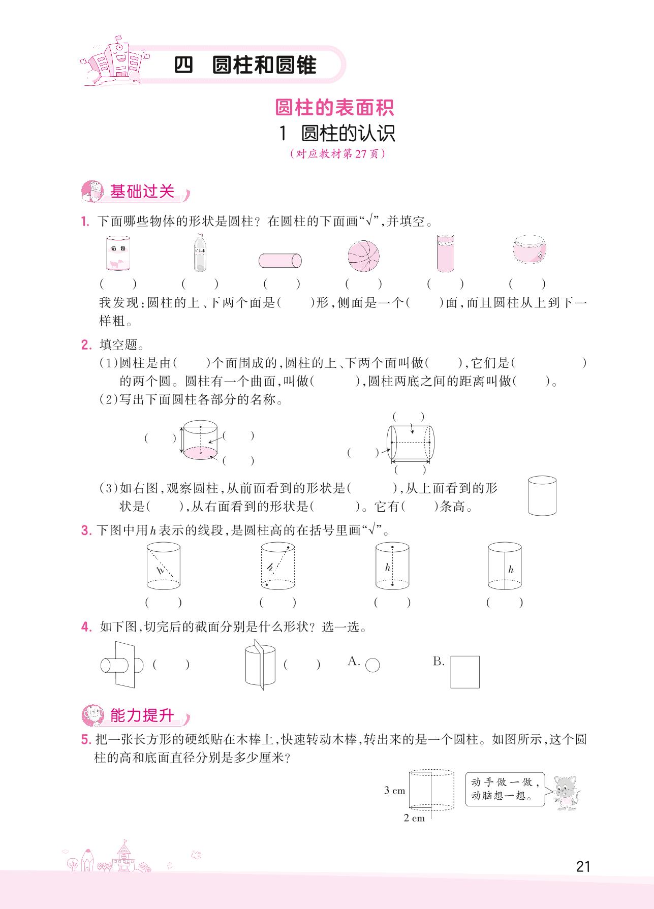 2022下册六年级数学冀教版 四 圆柱和圆锥——1 圆柱的认识