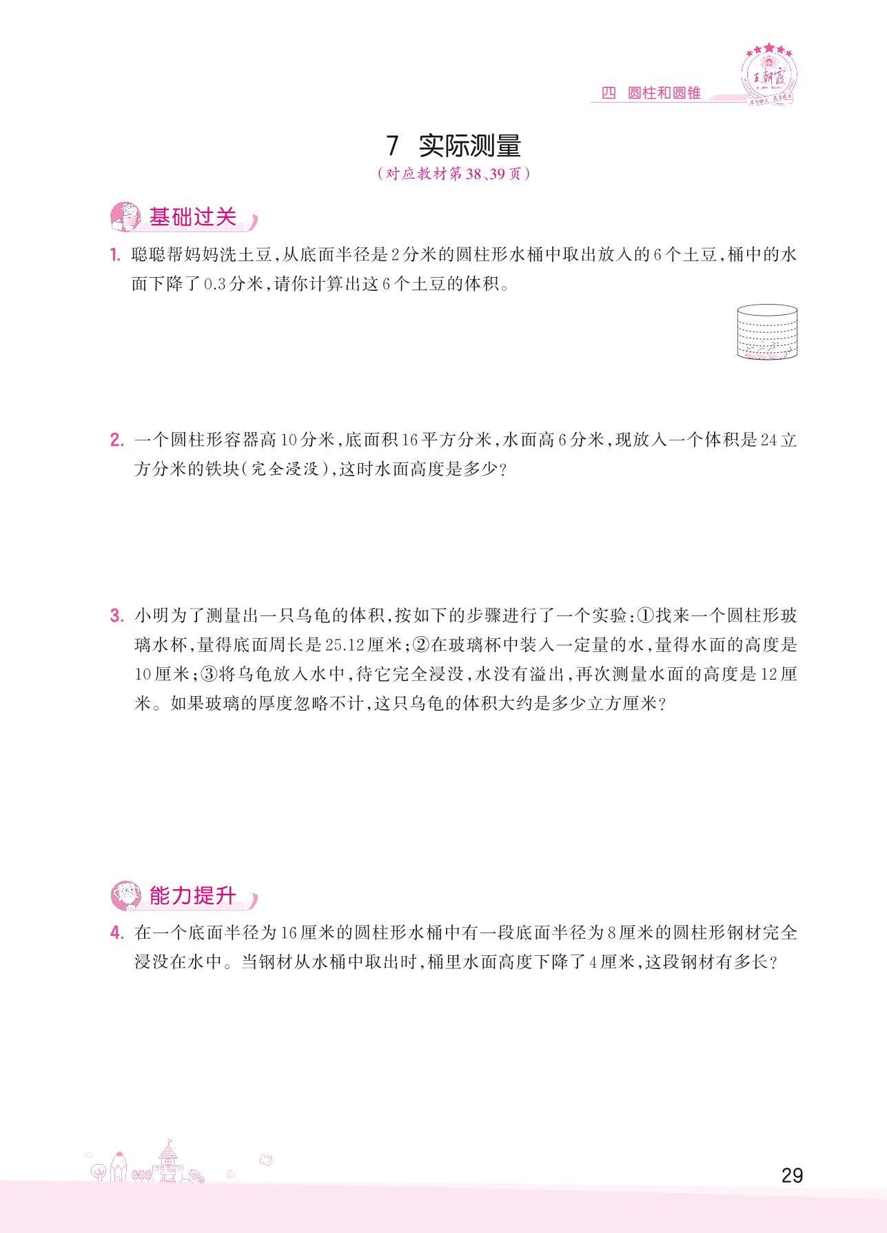 2022下册六年级数学冀教版 四 圆柱和圆锥——7 实际测量