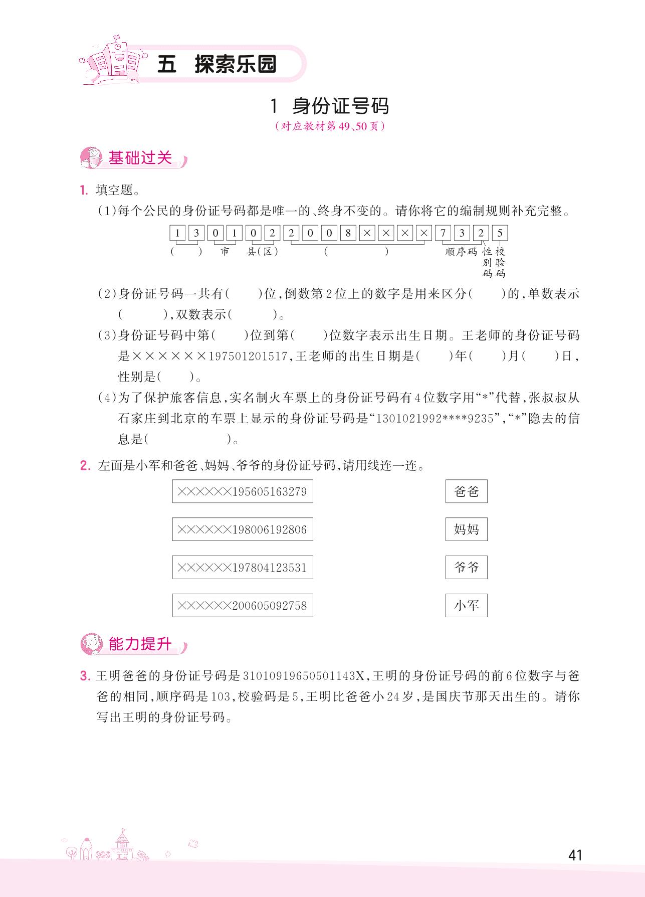 2022下册六年级数学冀教版 五 探索乐园——1 身份证号码
