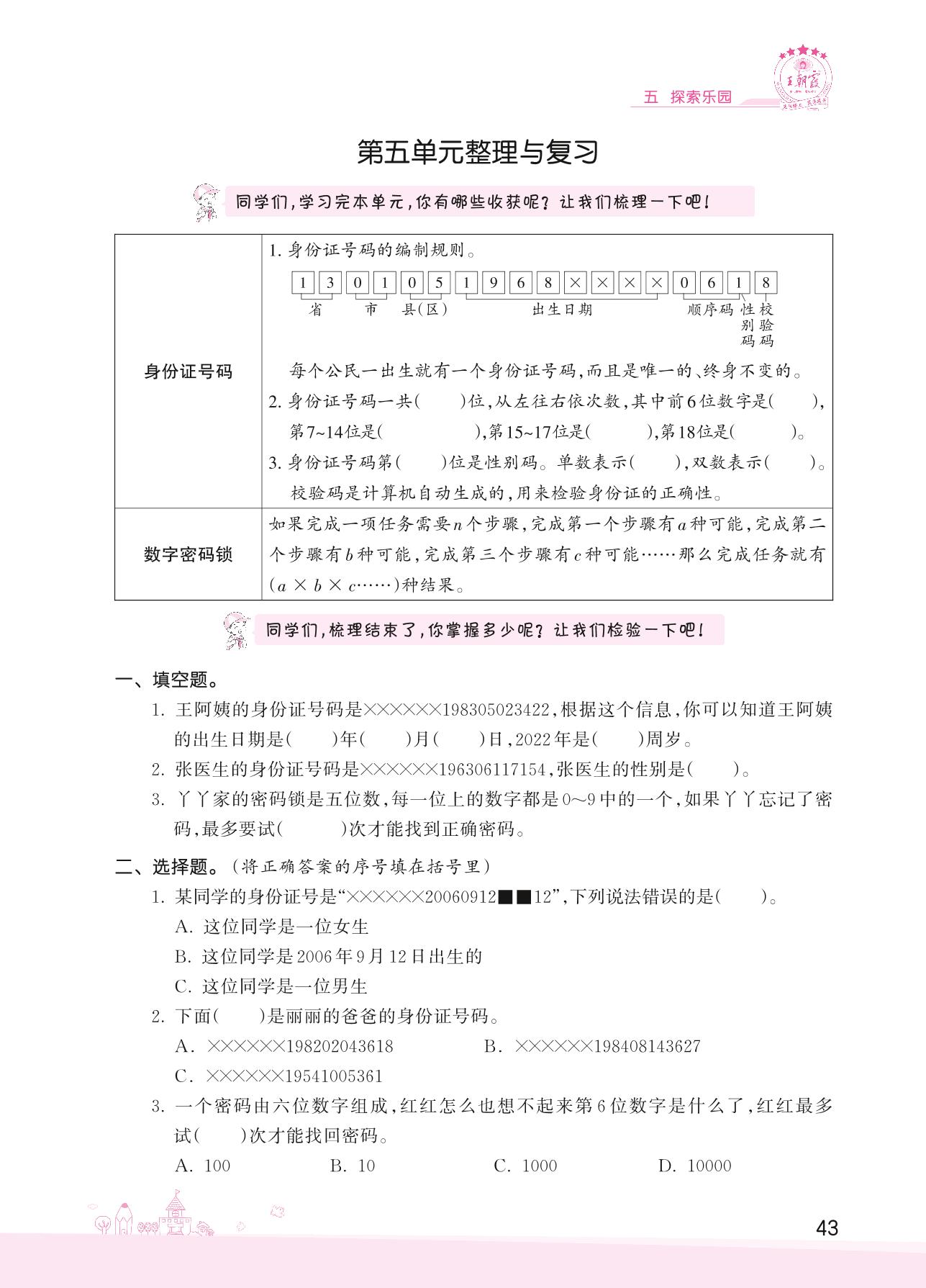 2022下册六年级数学冀教版 五 探索乐园——第五单元整理与复习