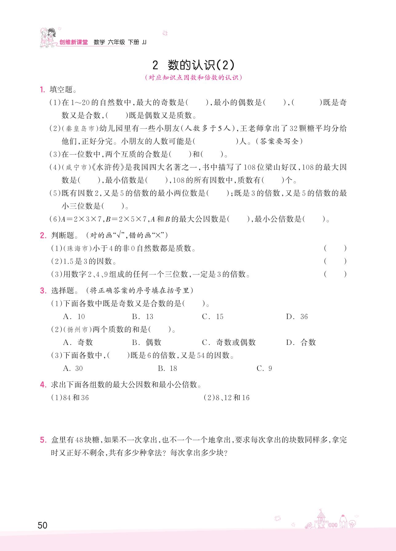 2022下册六年级数学冀教版 六 回顾与整理——2 数的认识(2)