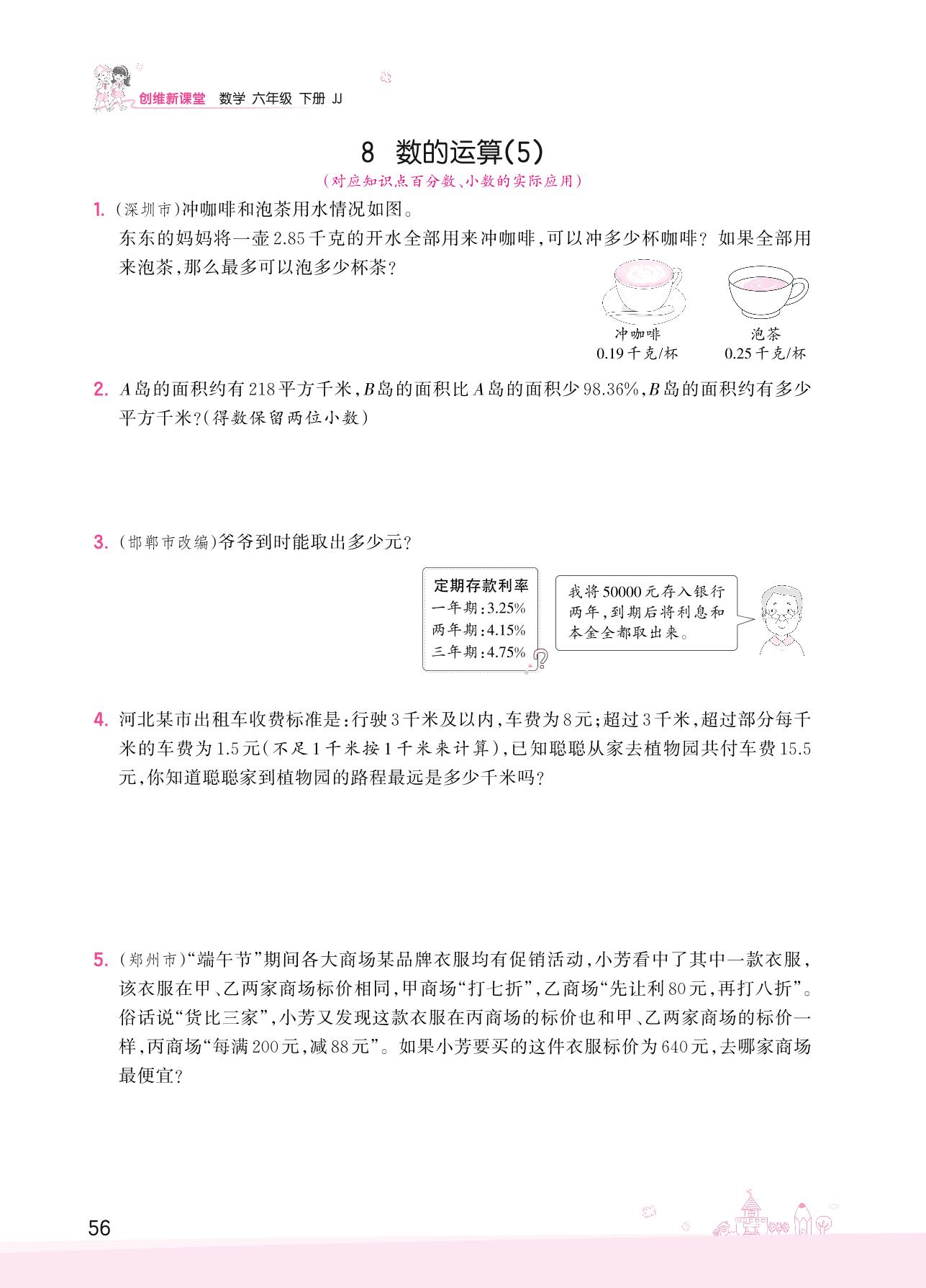 2022下册六年级数学冀教版 六 回顾与整理——8 数的运算(5)
