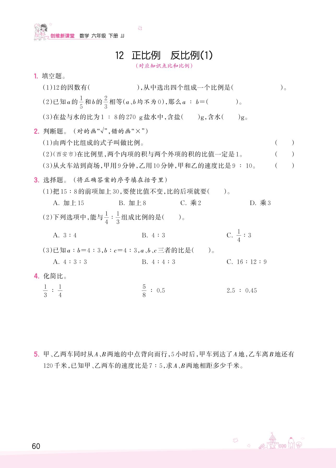 2022下册六年级数学冀教版 六 回顾与整理——12 正比例 反比例(1)