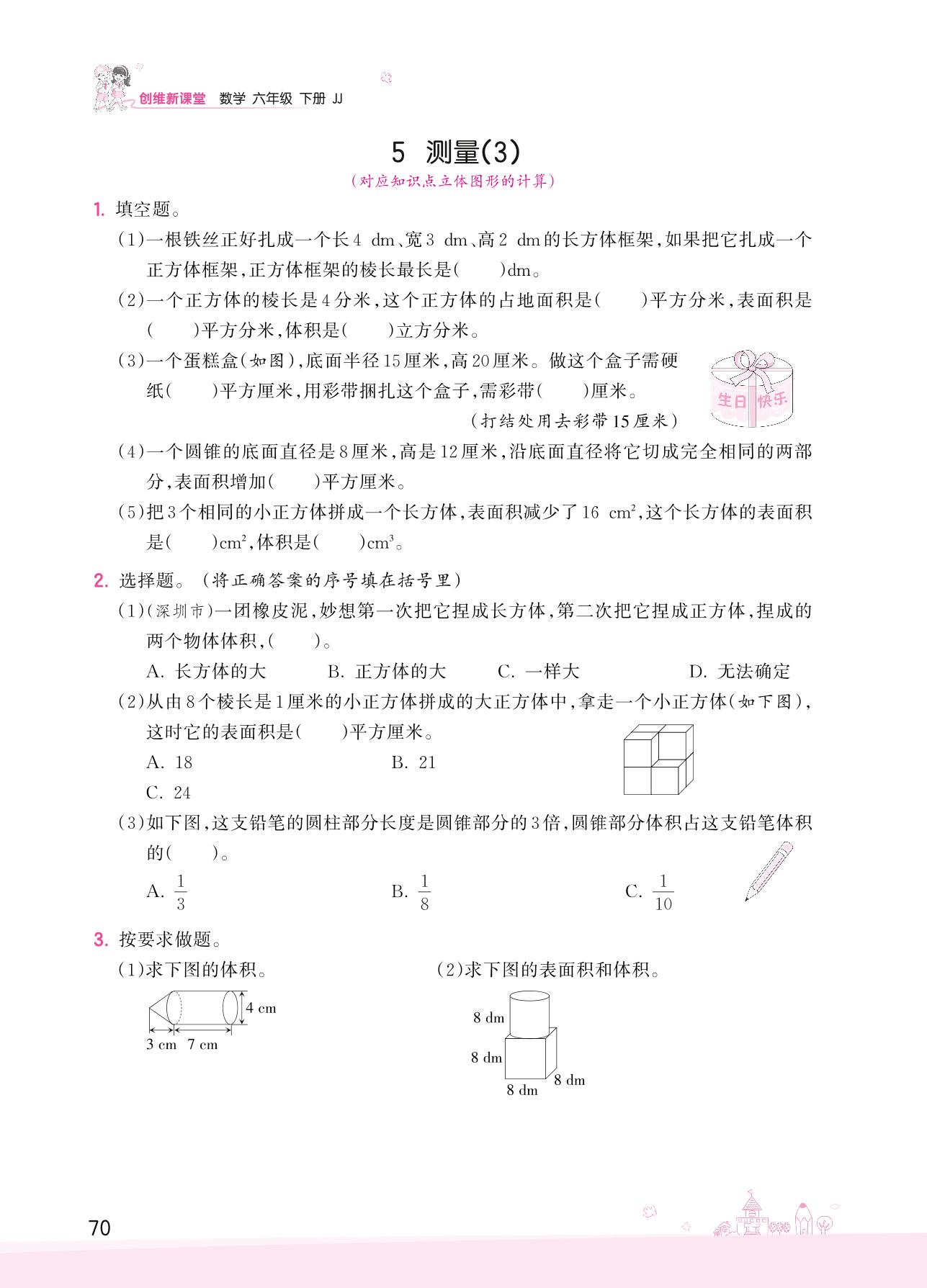 2022下册六年级数学冀教版 六 回顾与整理——5 测量(3)