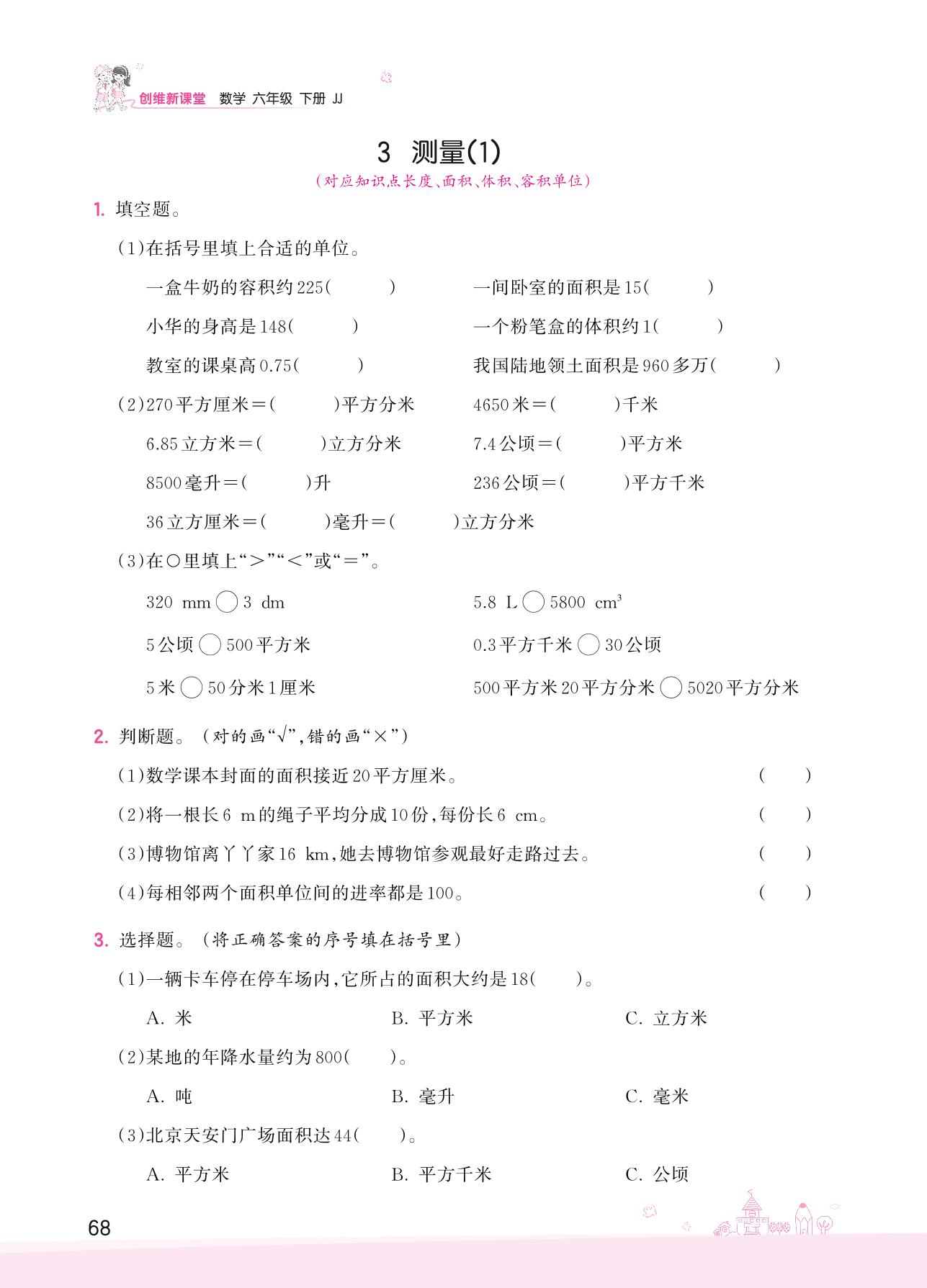 2022下册六年级数学冀教版 六 回顾与整理——3 测量(1)