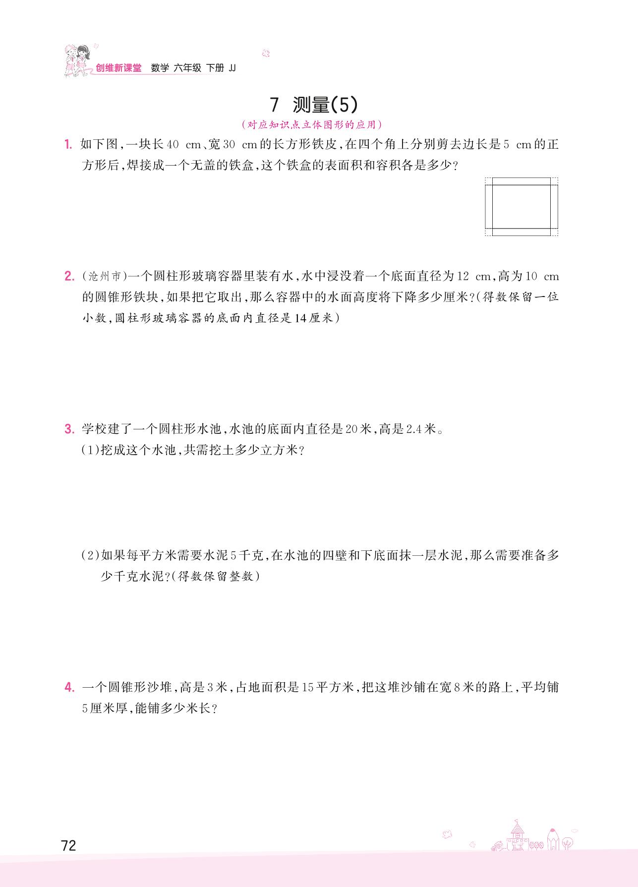 2022下册六年级数学冀教版 六 回顾与整理——7 测量(5)