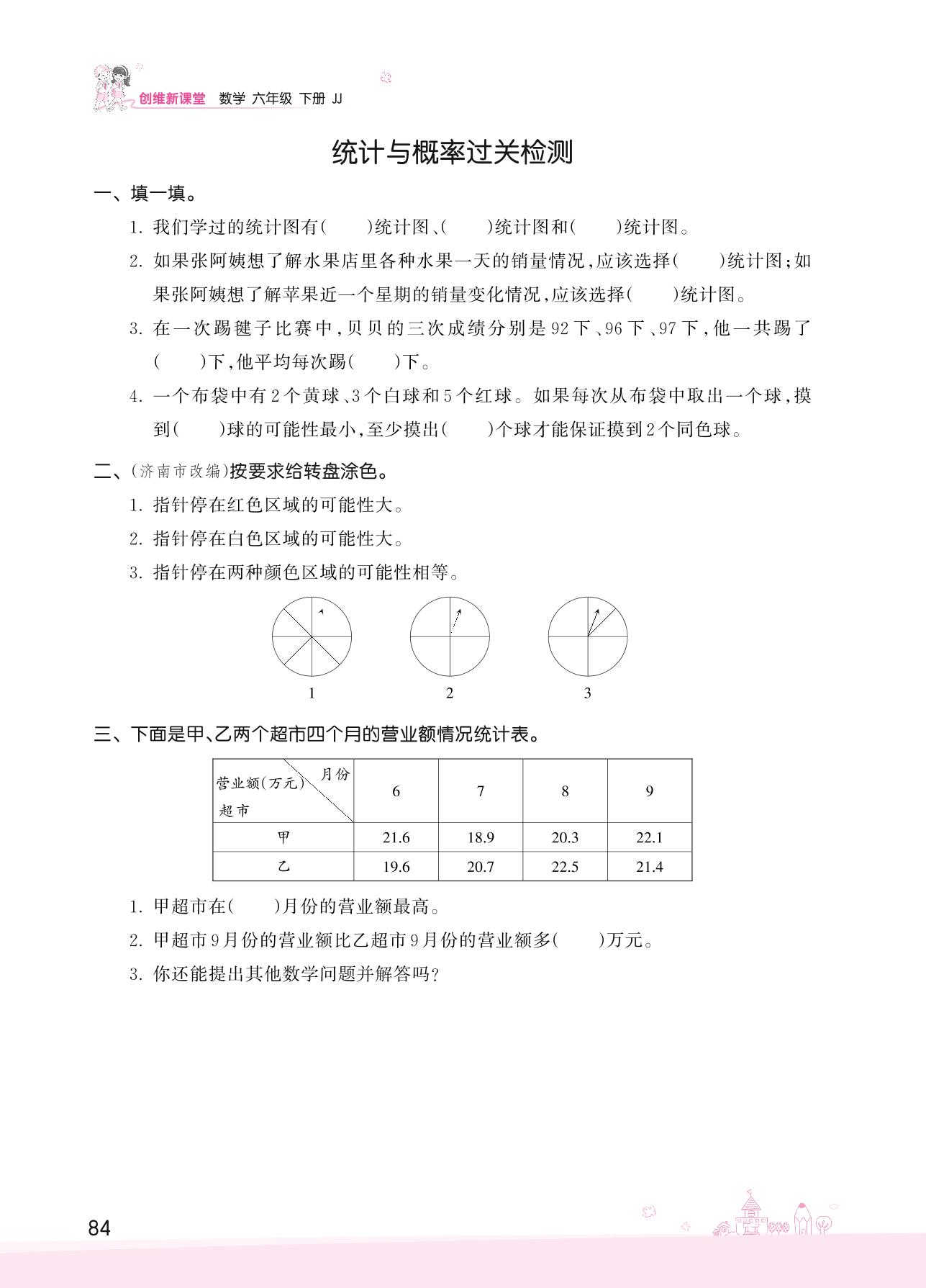 2022下册六年级数学冀教版 六 回顾与整理——统计与概率过关检测