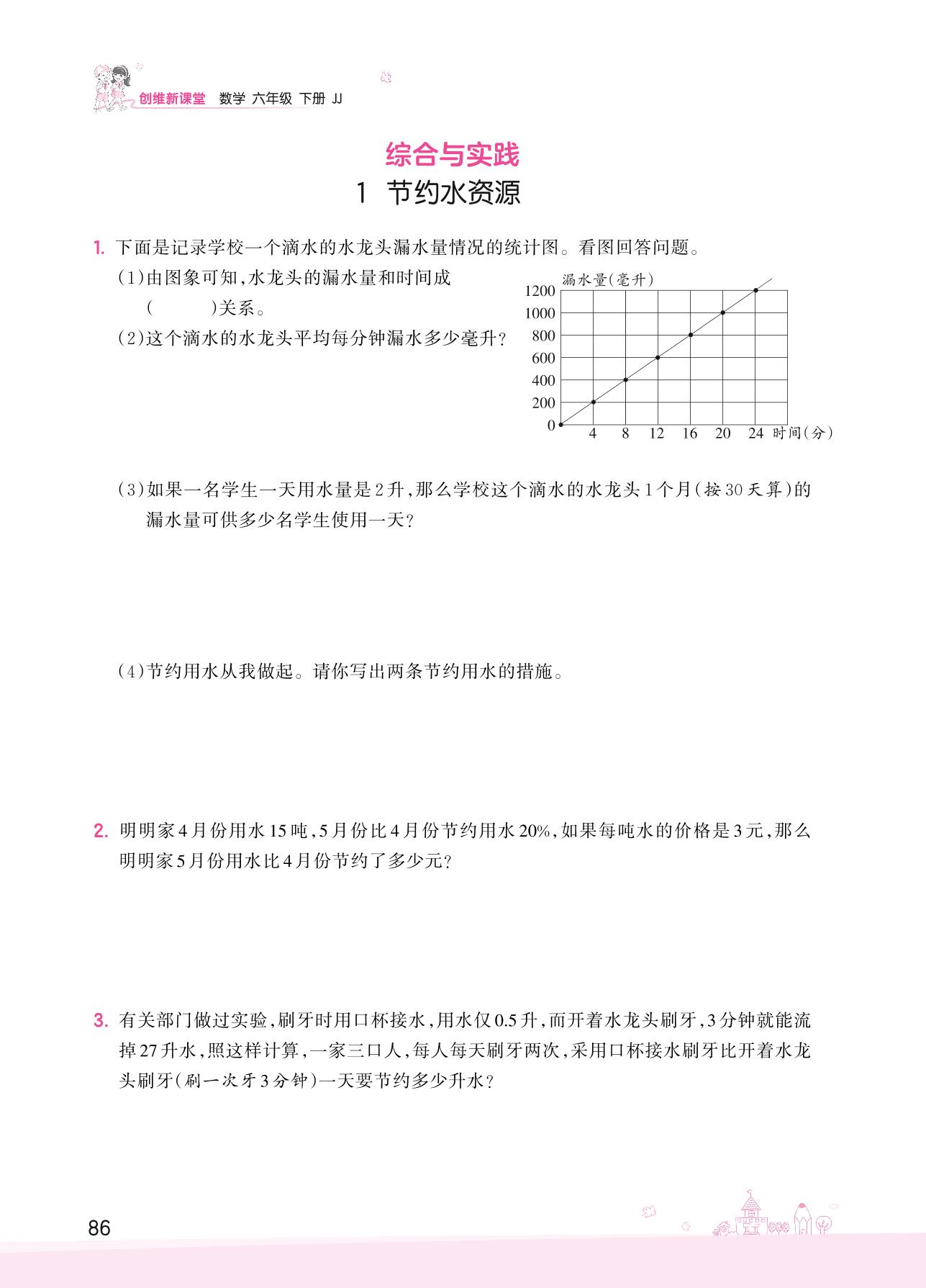 2022下册六年级数学冀教版 六 回顾与整理——1 节约水资源
