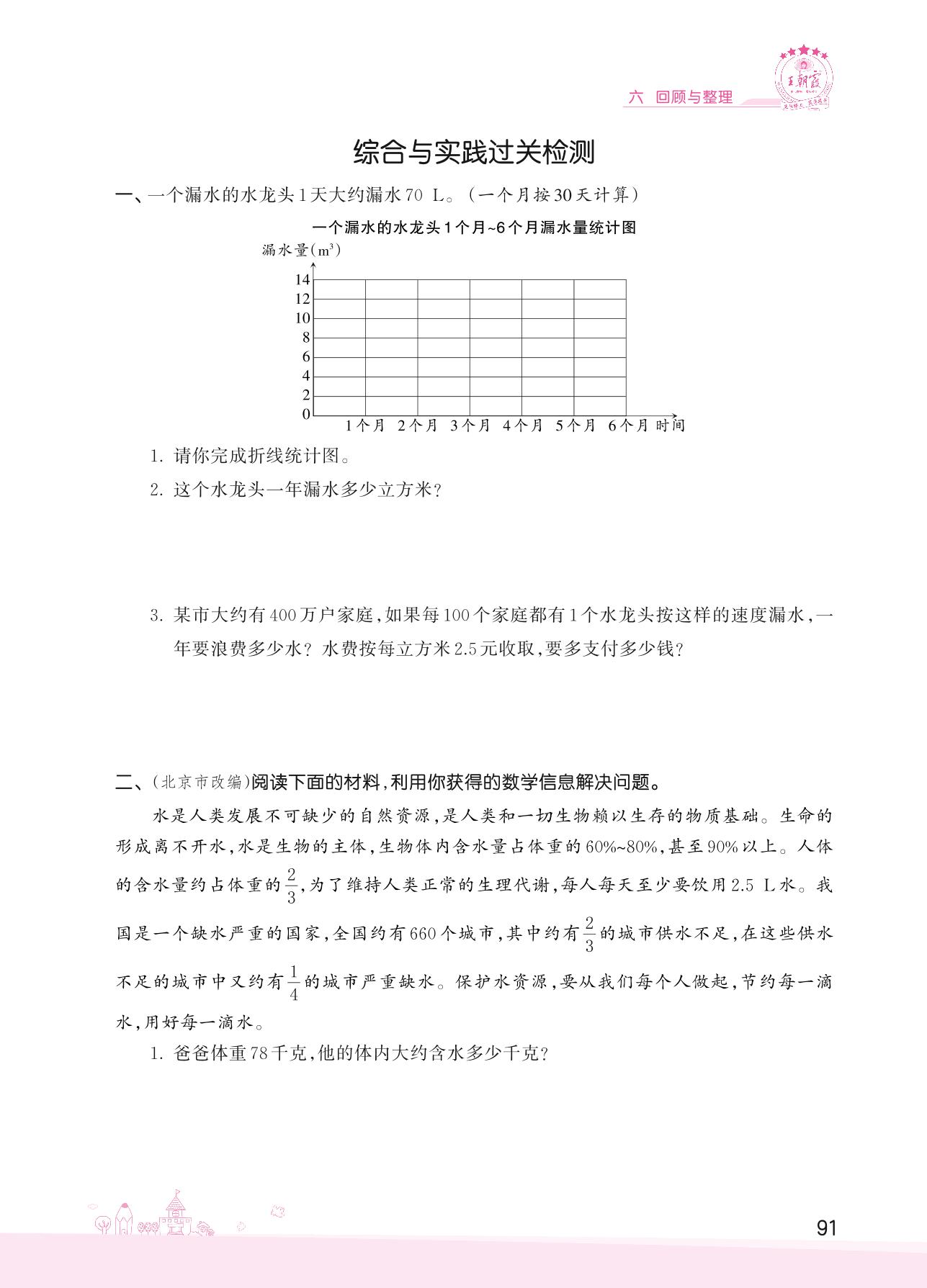 2022下册六年级数学冀教版 六 回顾与整理——综合与实践过关检测