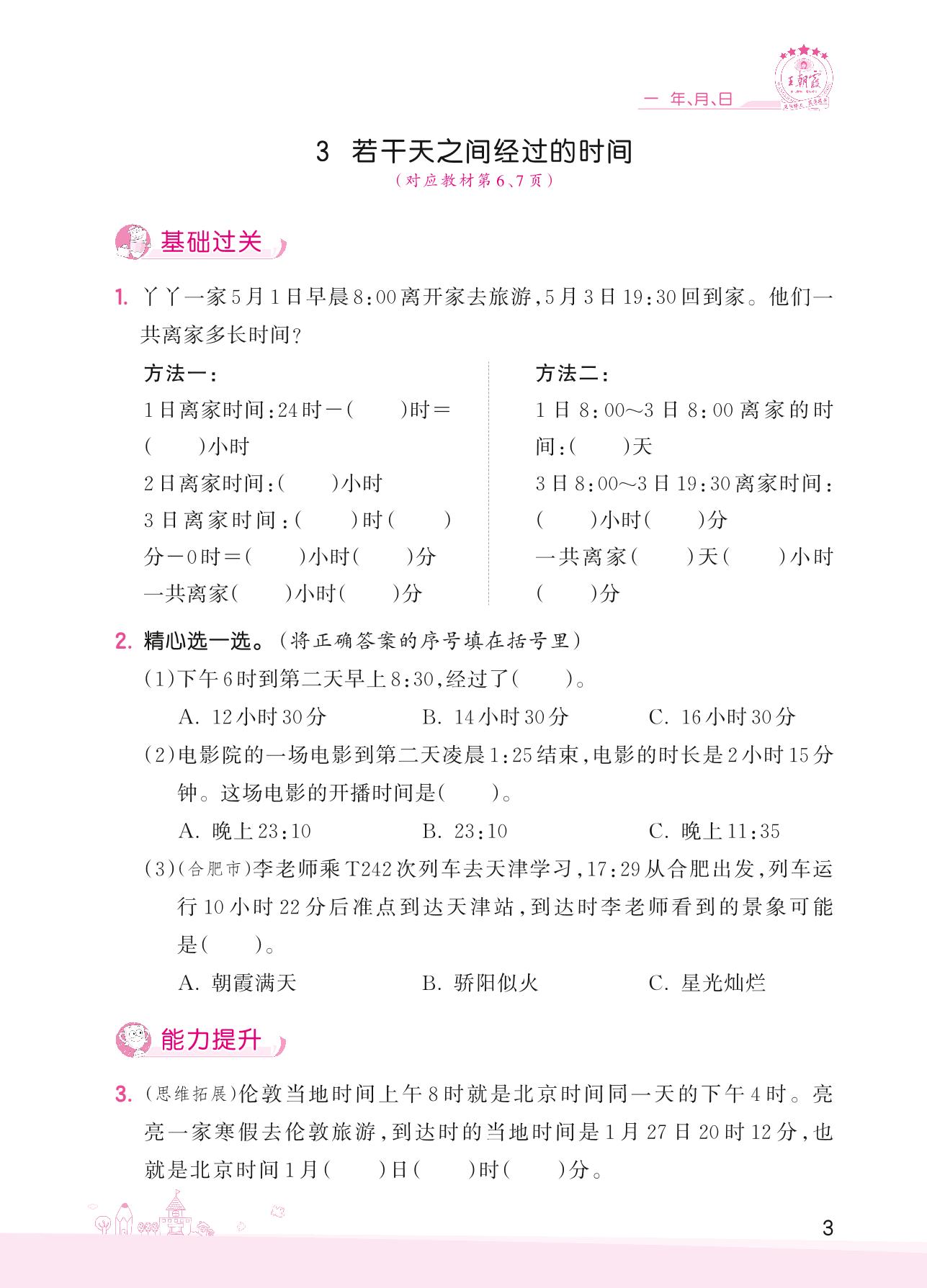 2022下册三年级数学冀教版 一 年、月、日——3 若干天之间经过的时间