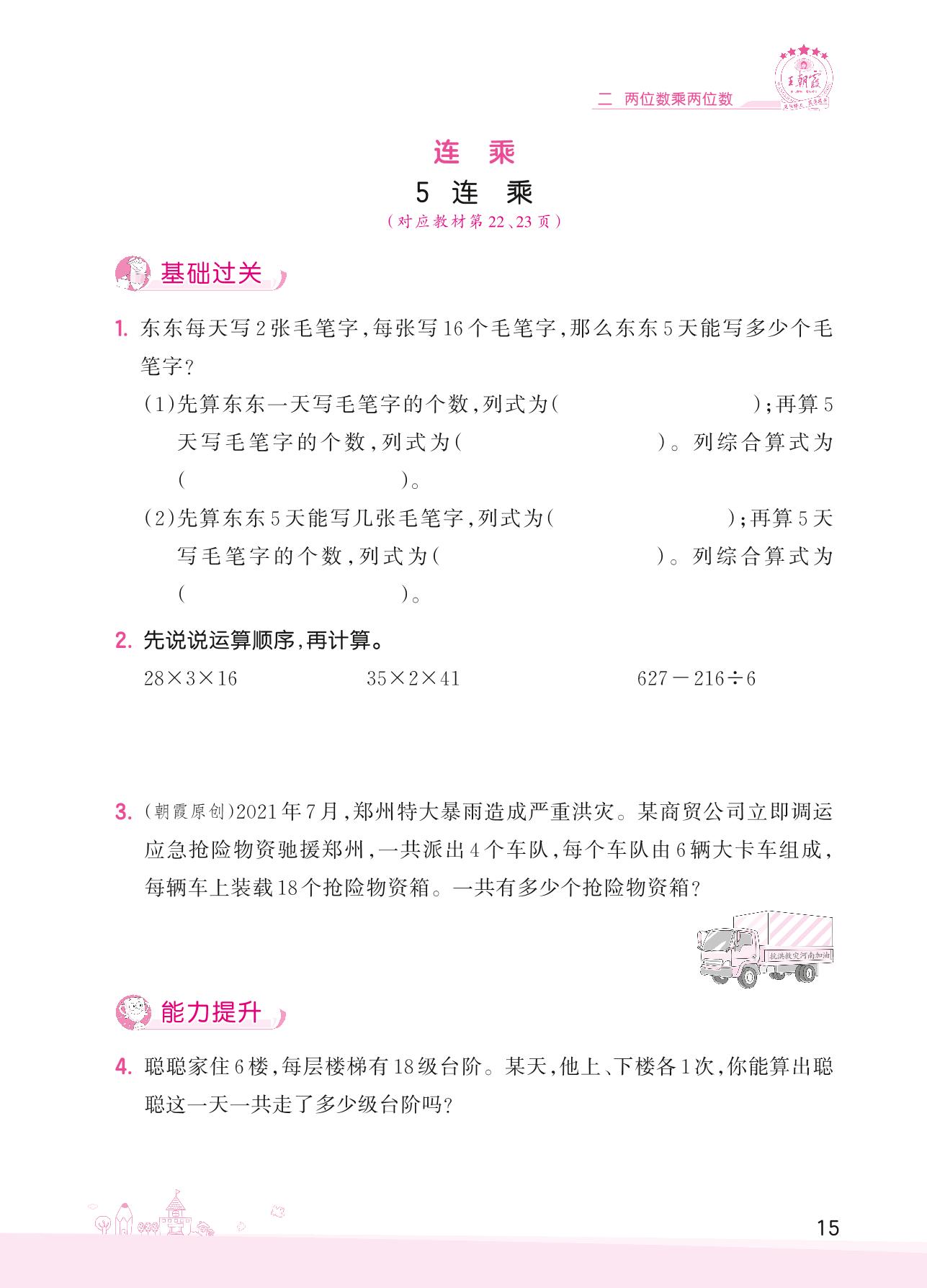 2022下册三年级数学冀教版 二 两位数乘两位数——5 连乘