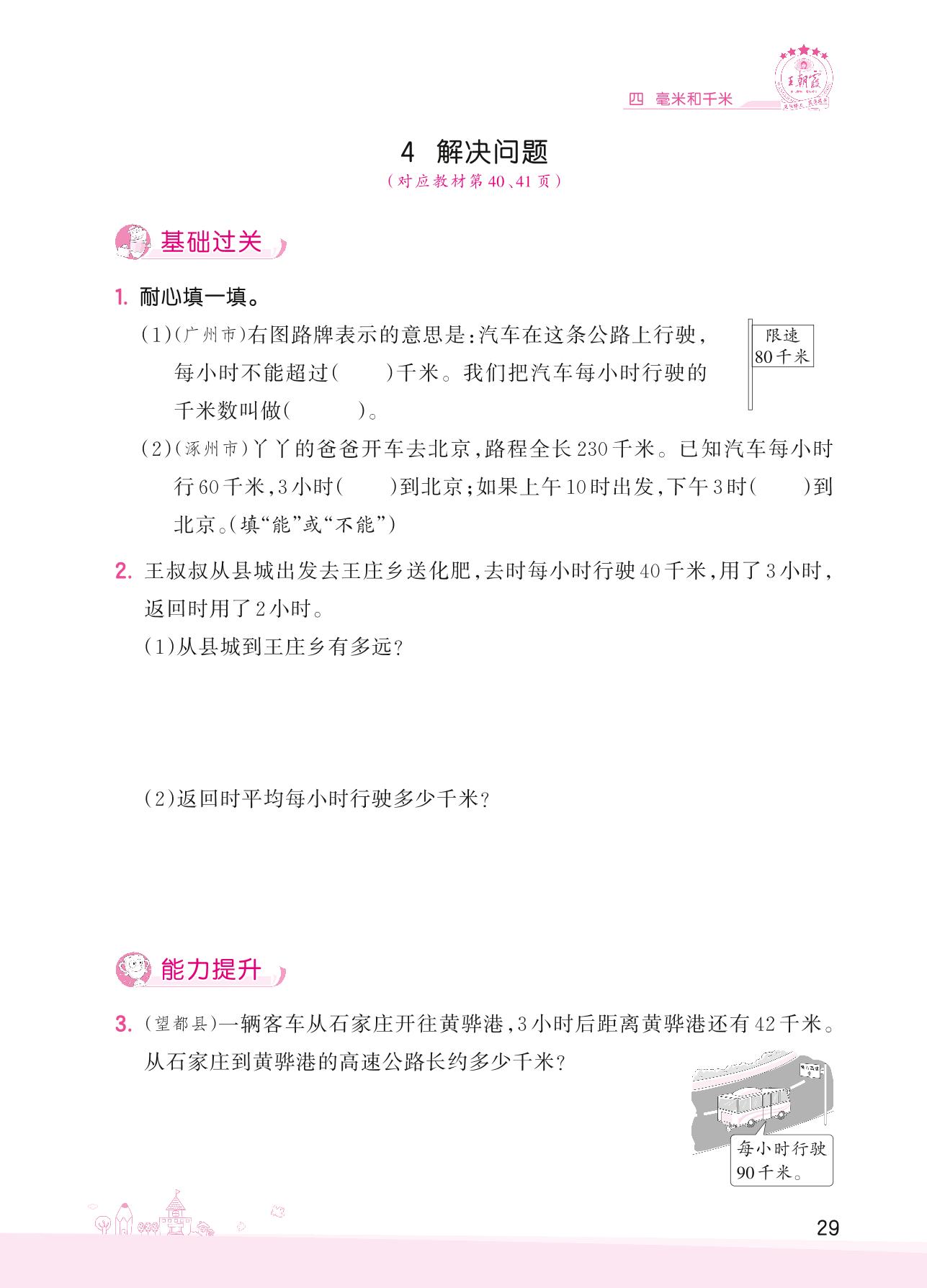 2022下册三年级数学冀教版 四 毫米和千米——4 解决问题