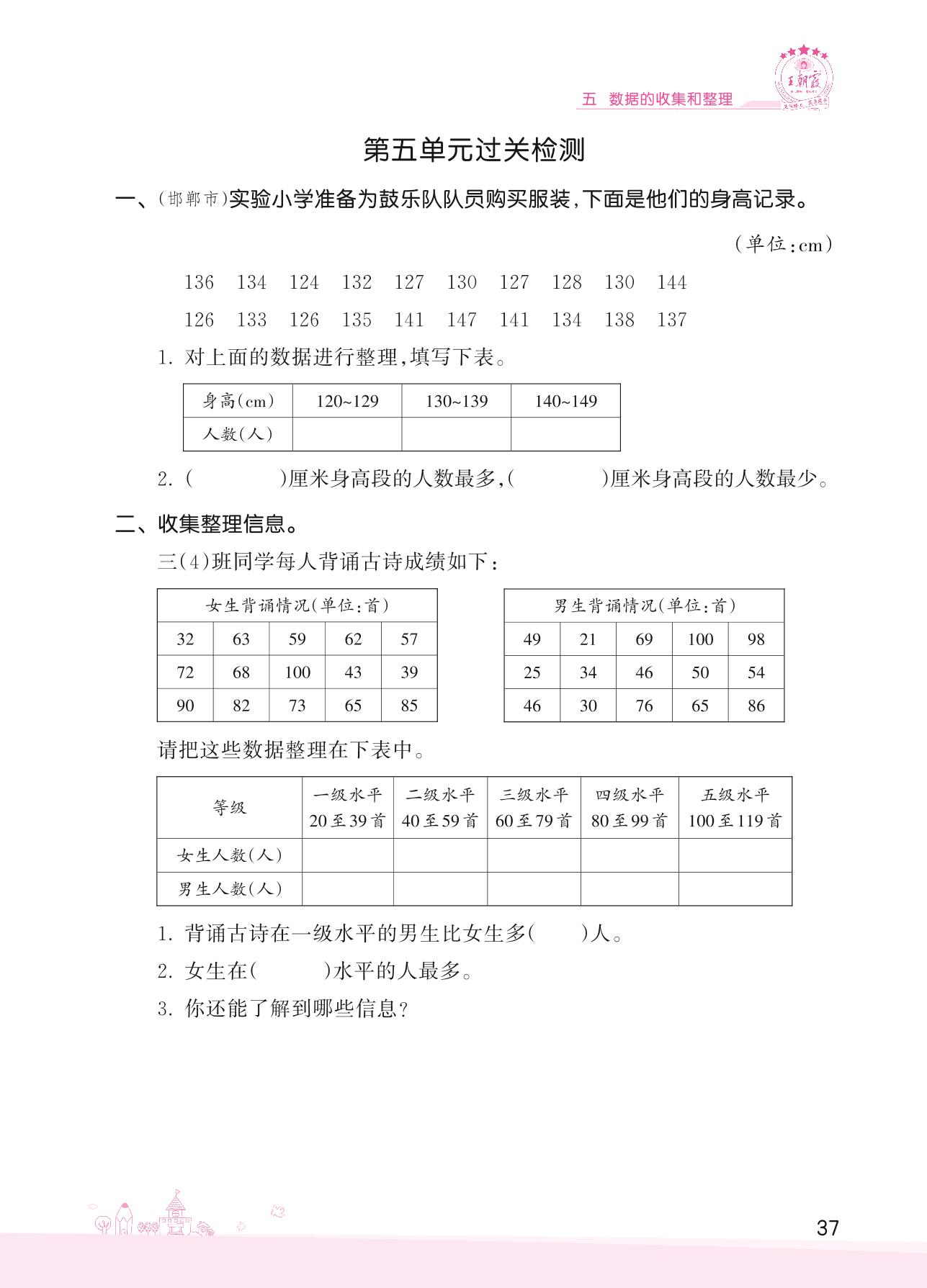 2022下册三年级数学冀教版 五 数据的收集和整理——第五单元过关检测