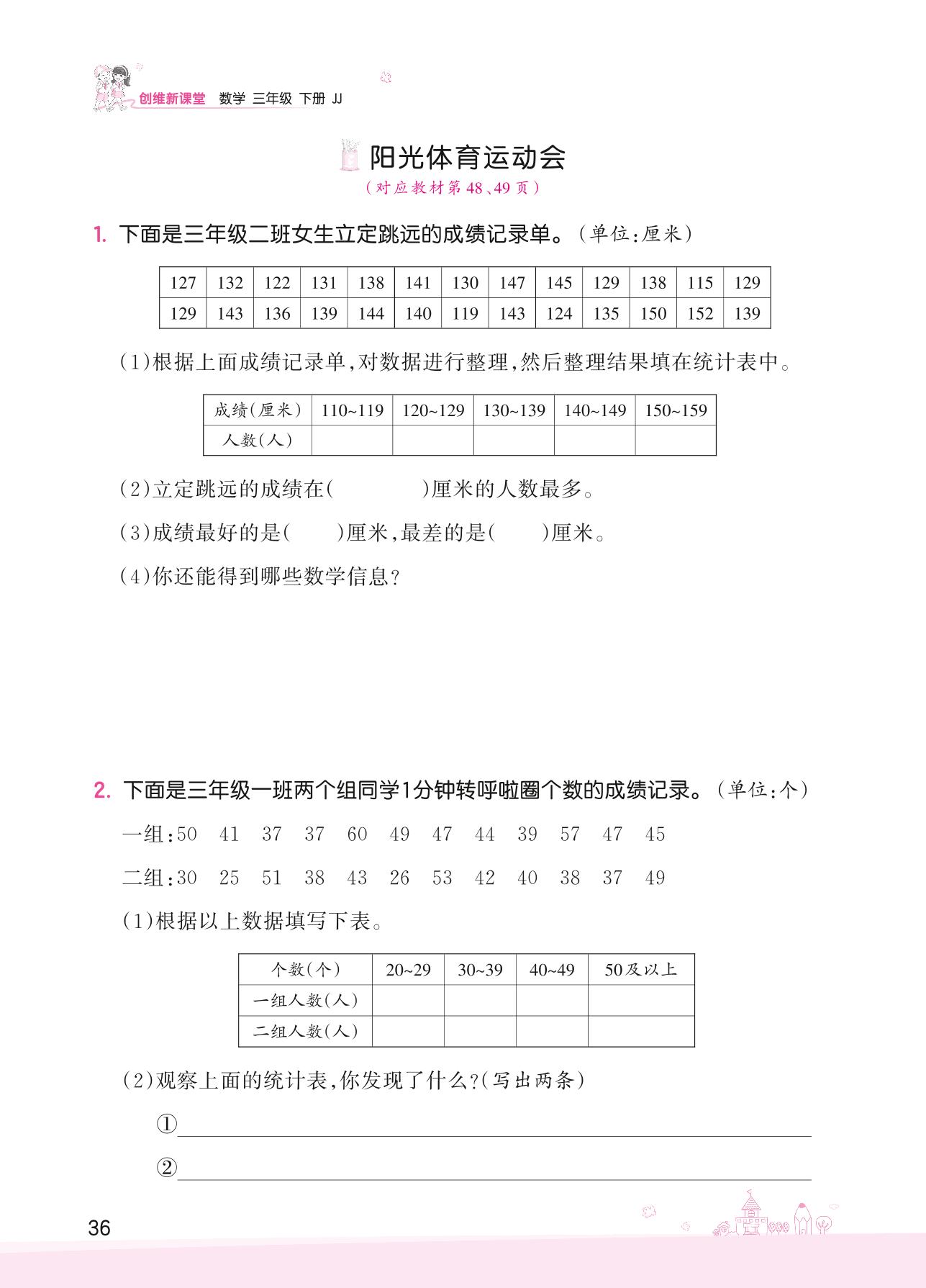 2022下册三年级数学冀教版 五 数据的收集和整理——阳光体育运动会