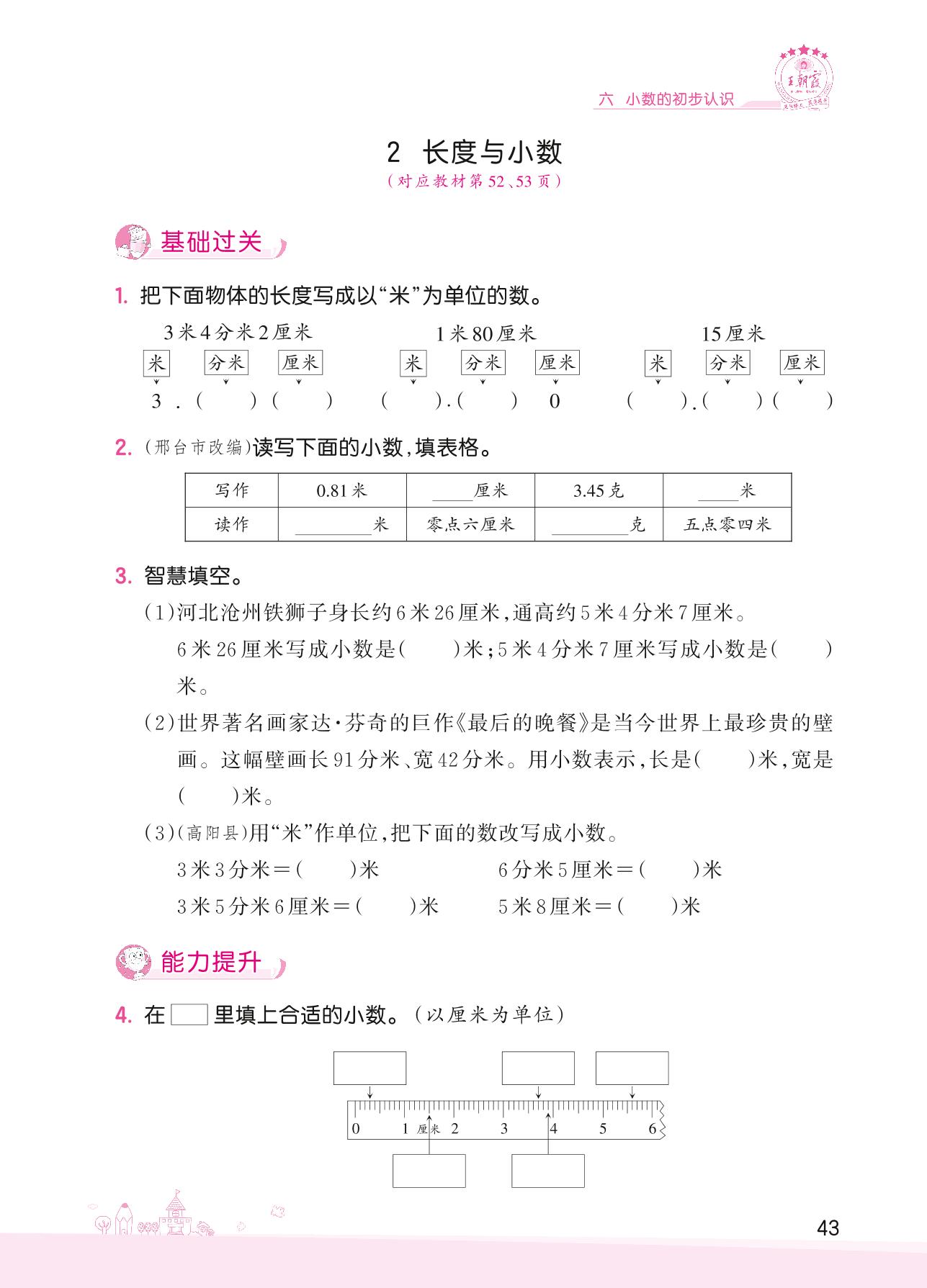 2022下册三年级数学冀教版 六 小数的初步认识——2 长度与小数