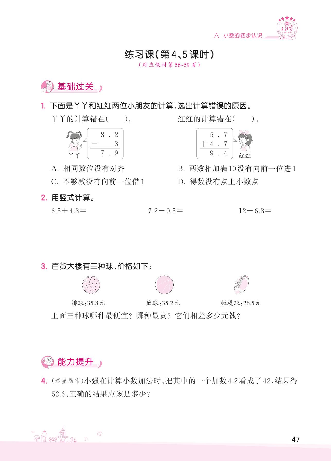 2022下册三年级数学冀教版 六 小数的初步认识——练习课(第4、5课时)