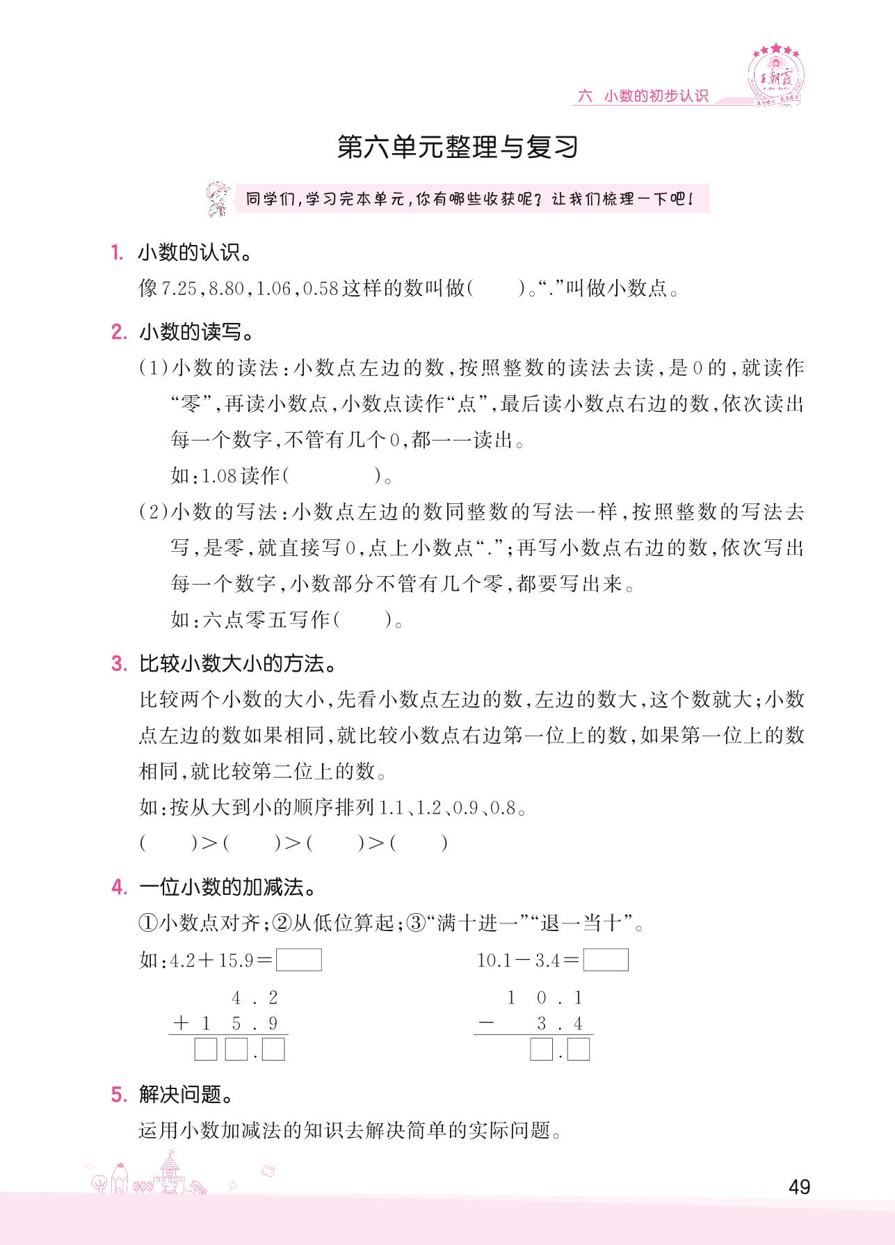 2022下册三年级数学冀教版 六 小数的初步认识——第六单元整理与复习