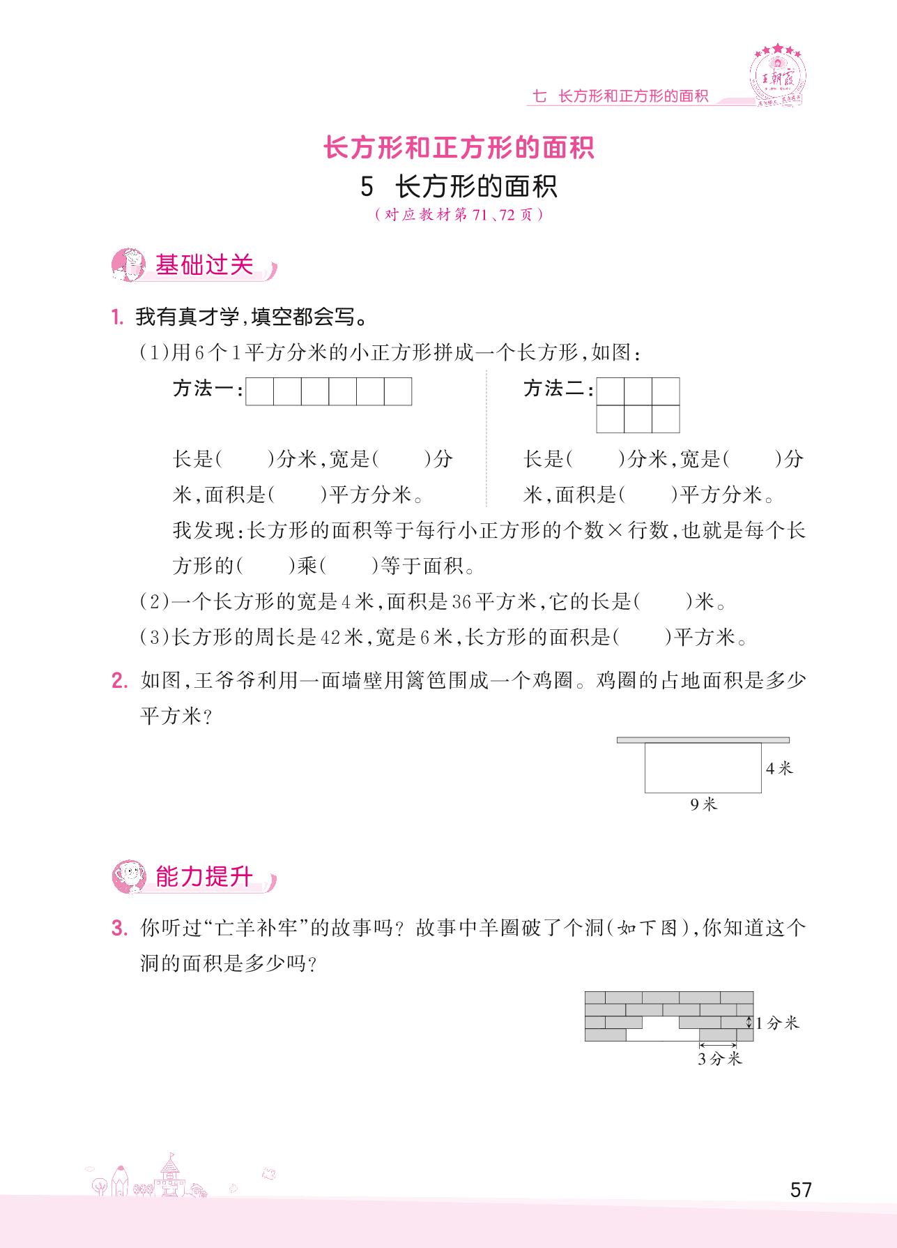 2022下册三年级数学冀教版 七 长方形和正方形的面积——5 长方形的面积