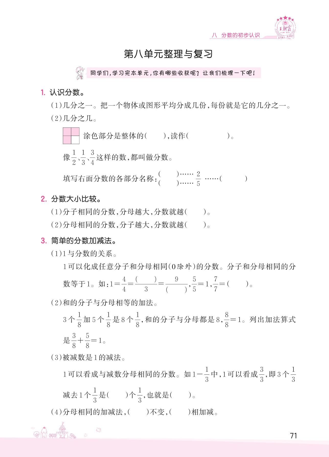 2022下册三年级数学冀教版 八 分数的初步认识——第八单元整理与复习