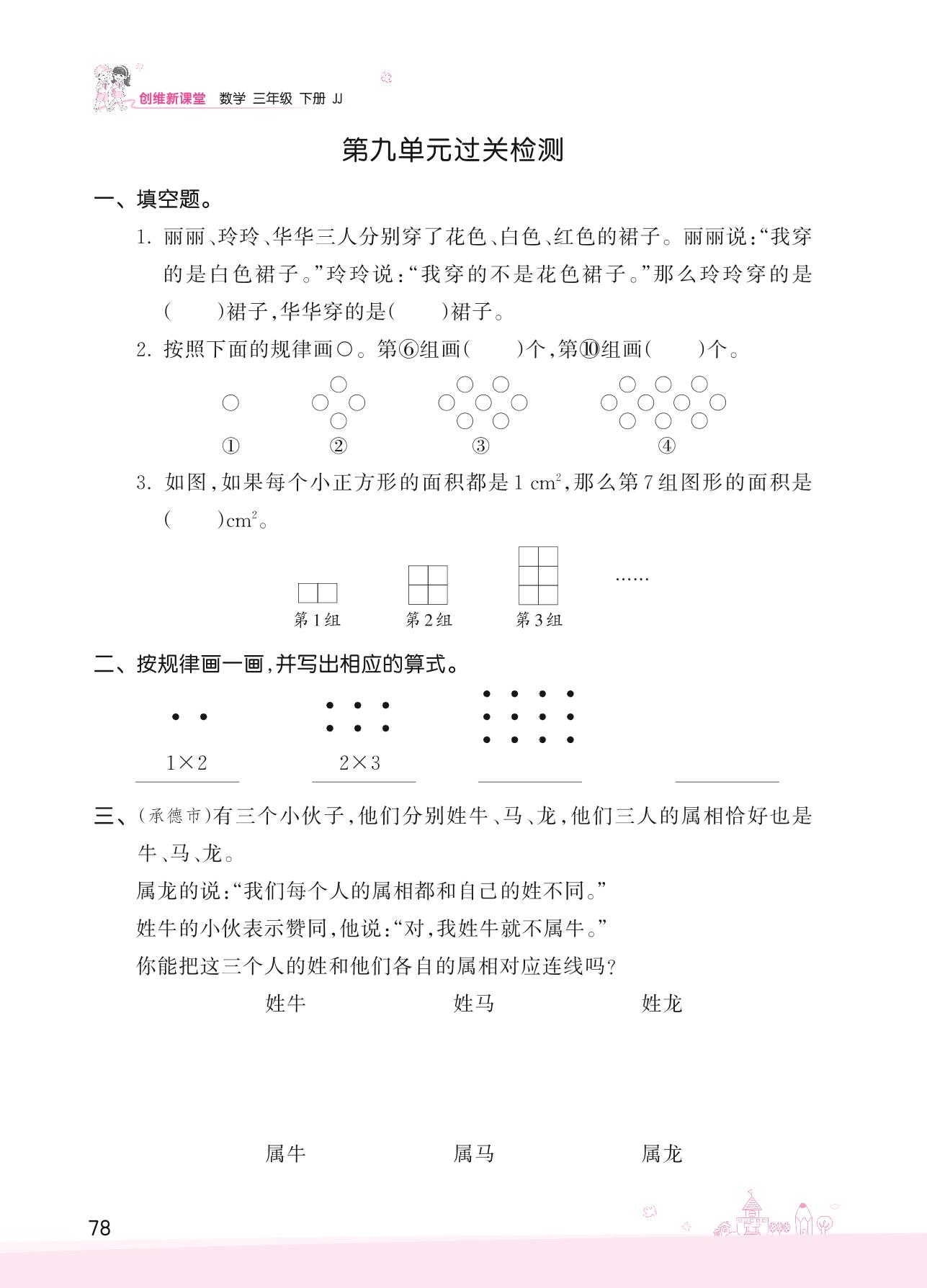 2022下册三年级数学冀教版 九 探索乐园——第九单元过关检测