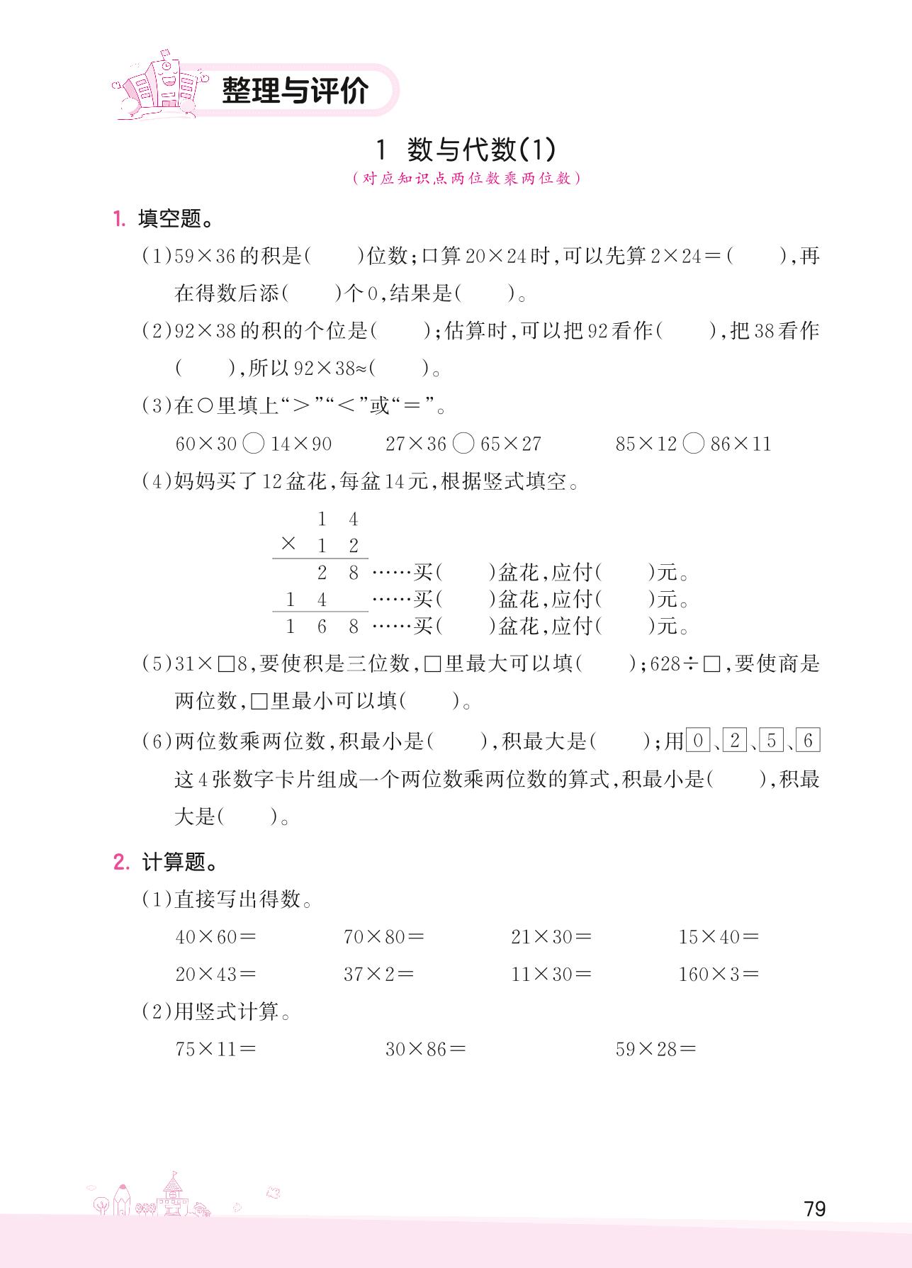 2022下册三年级数学冀教版 整理与评价——1 数与代数(1)