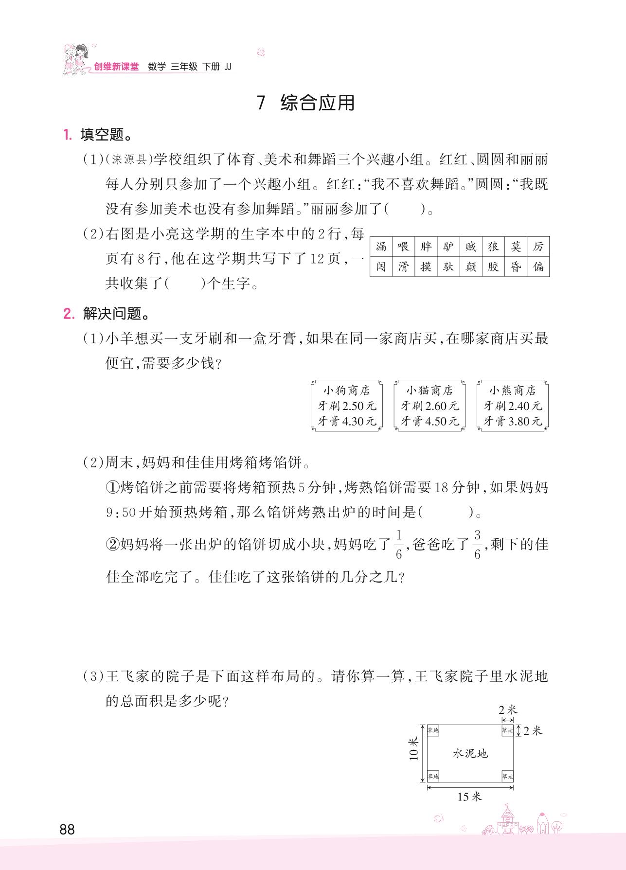2022下册三年级数学冀教版 整理与评价——7 综合应用