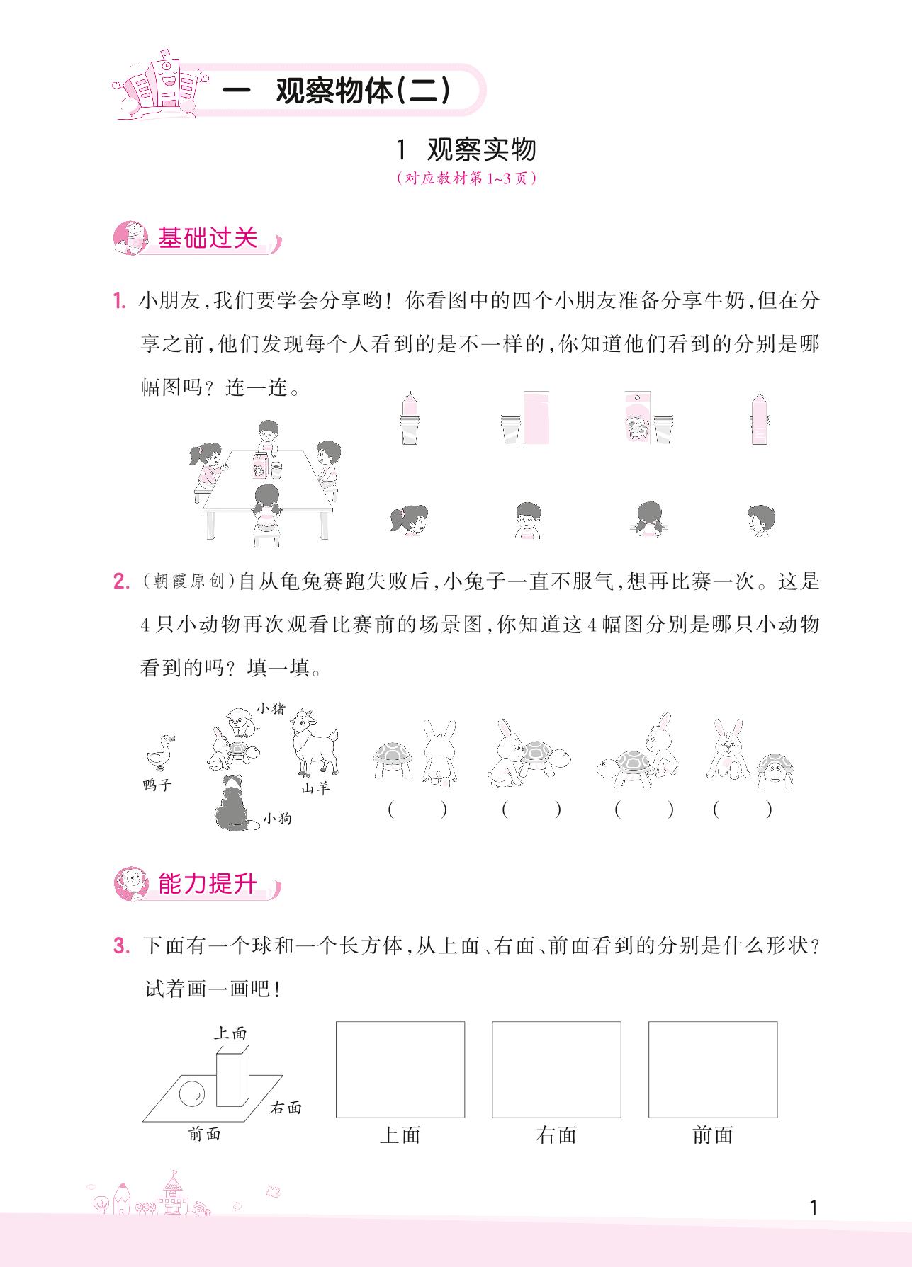 2022下册四年级数学冀教版 一 观察物体(二)——1 观察实物