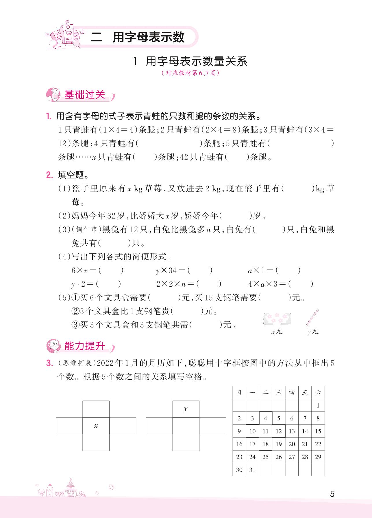 2022下册四年级数学冀教版 二 用字母表示数——1 用字母表示数量关系