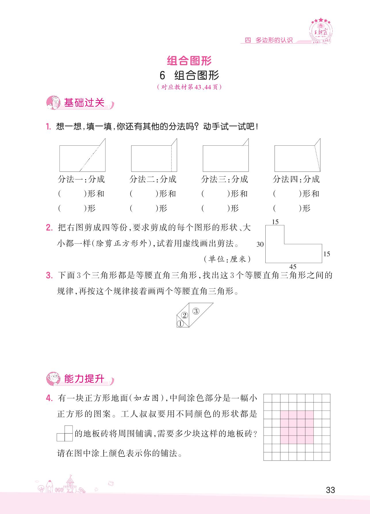 2022下册四年级数学冀教版 四 多边形的认识——6 组合图形