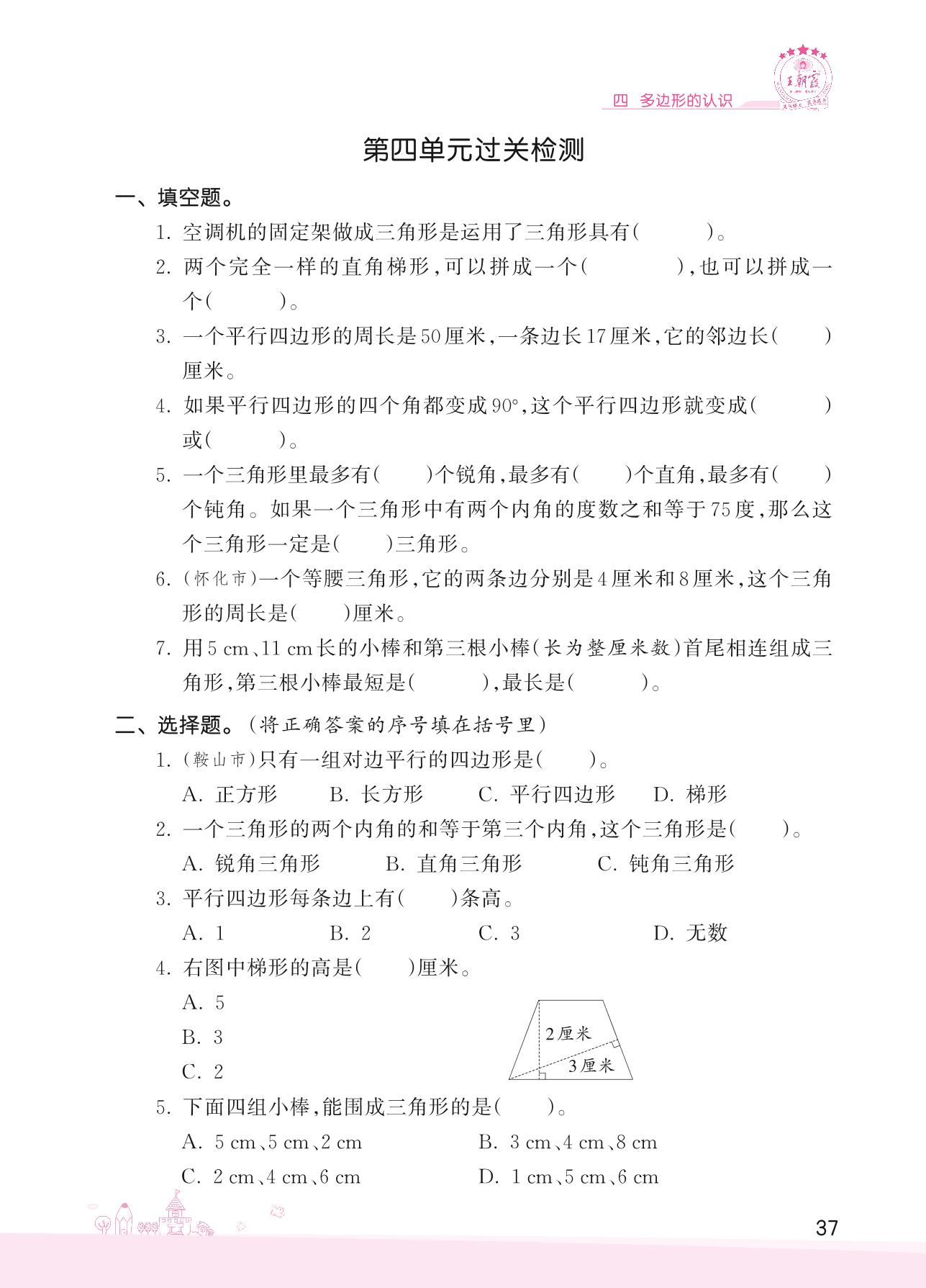 2022下册四年级数学冀教版 四 多边形的认识——第四单元过关检测