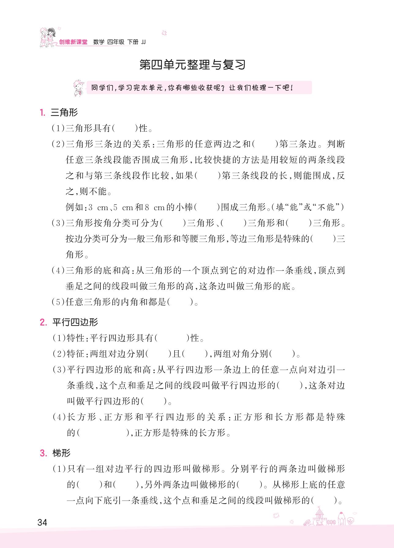 2022下册四年级数学冀教版 四 多边形的认识——第四单元整理与复习