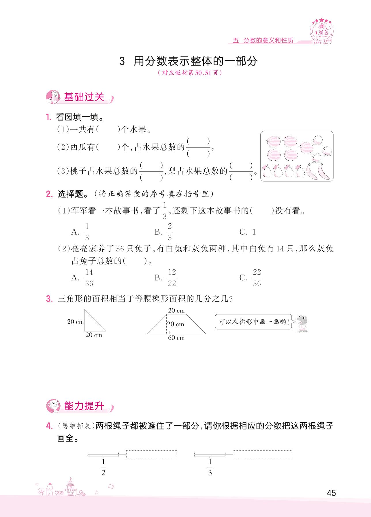 2022下册四年级数学冀教版 五 分数的意义和性质——3 用分数表示整体的一部分