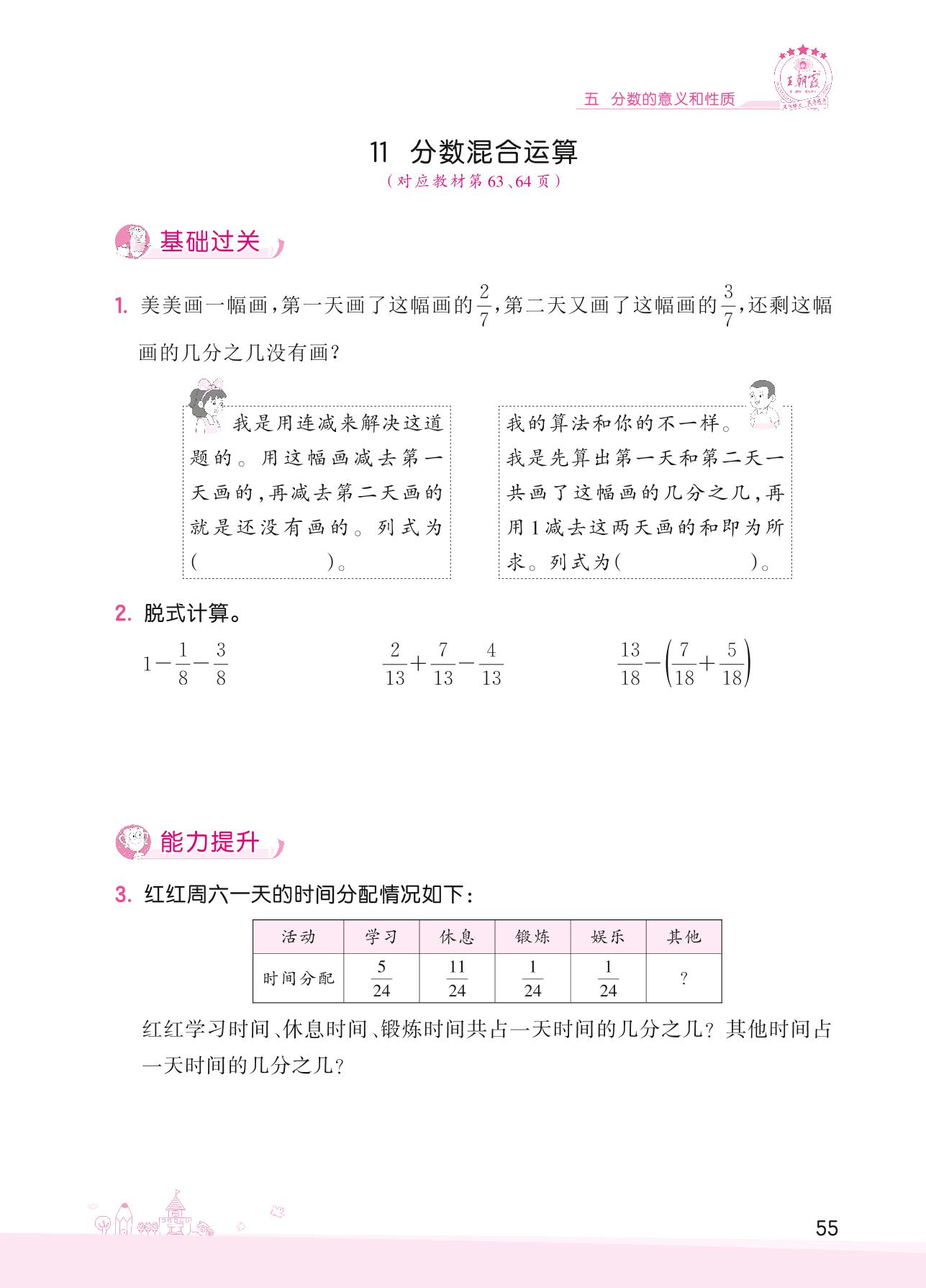 2022下册四年级数学冀教版 五 分数的意义和性质——11 分数混合运算