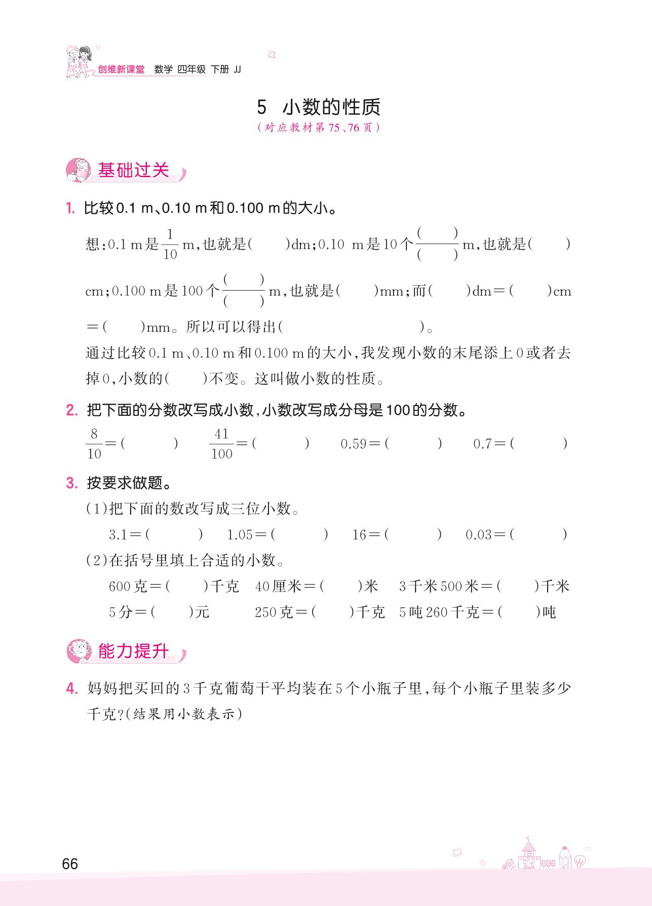 2022下册四年级数学冀教版 六 小数的认识——5 小数的性质