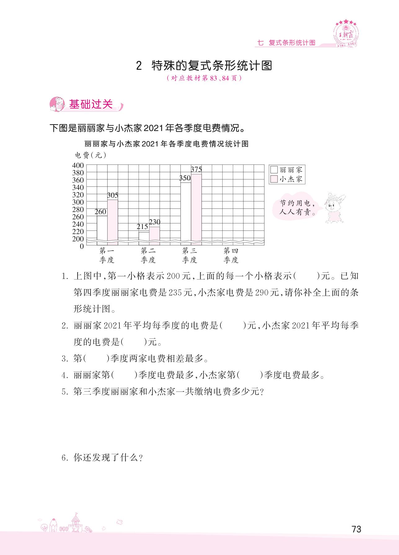 2022下册四年级数学冀教版 七 复式条形统计图——2 特殊的复式条形统计图