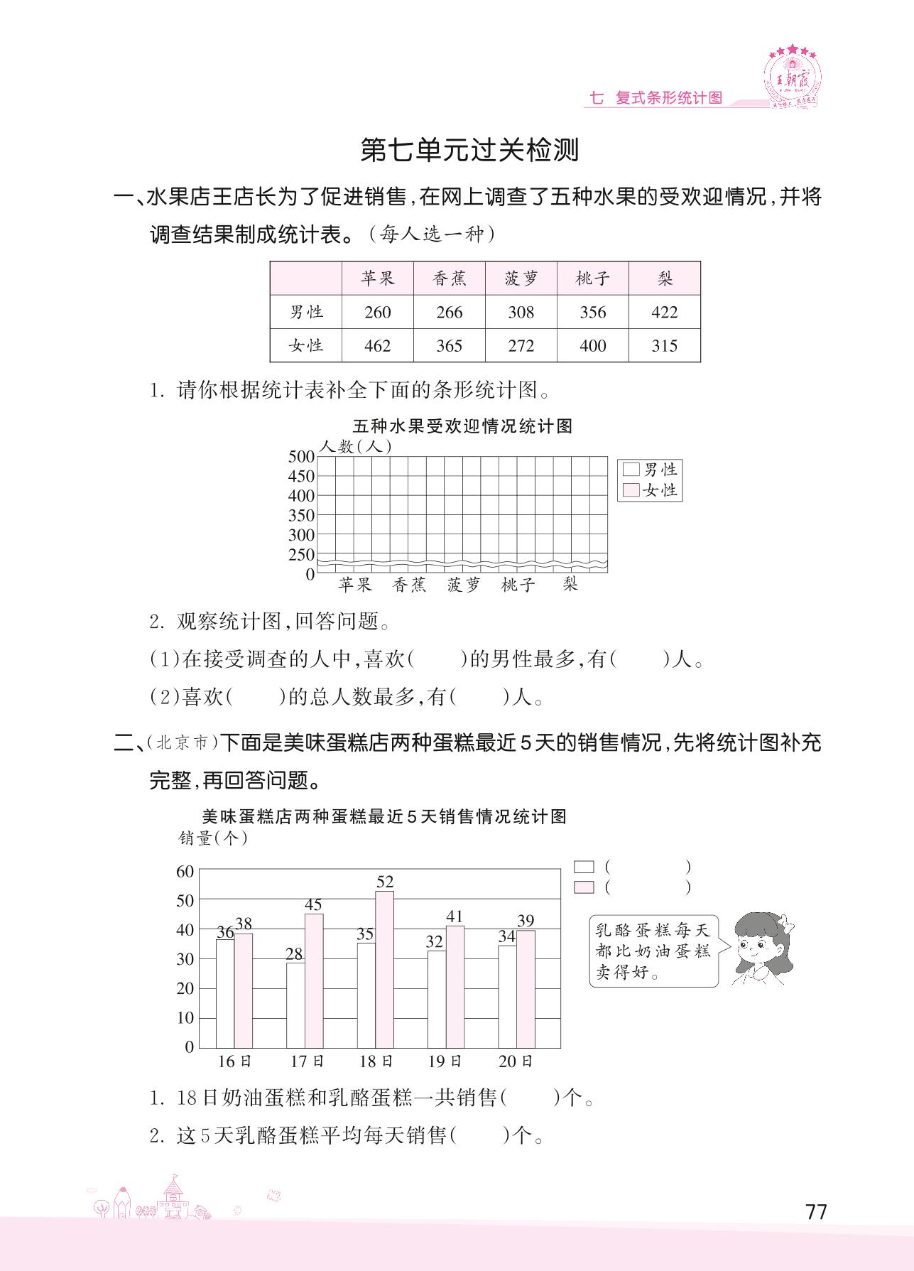 2022下册四年级数学冀教版 七 复式条形统计图——第七单元过关检测