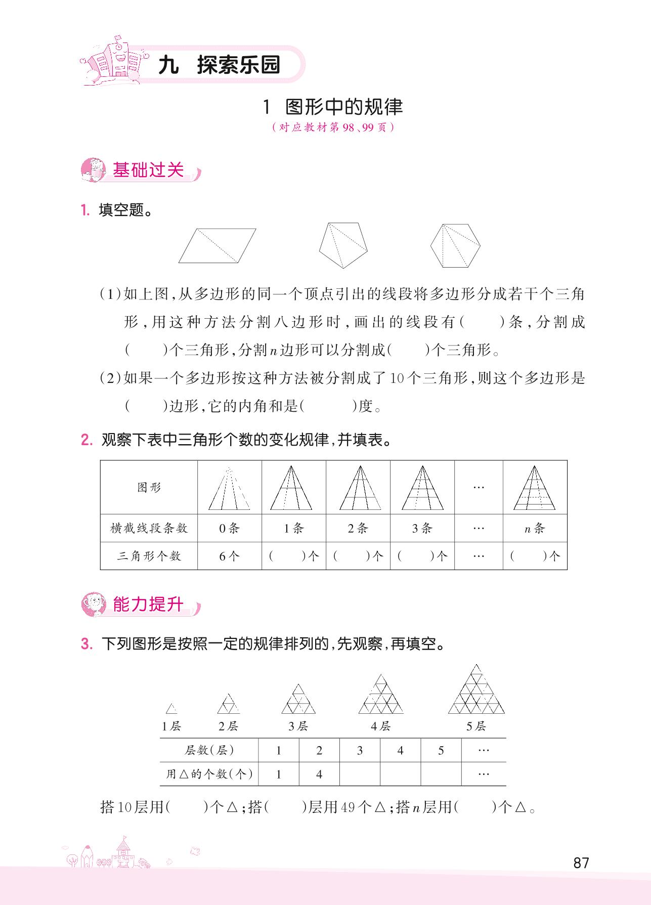 2022下册四年级数学冀教版 九 探索乐园——1 图形中的规律